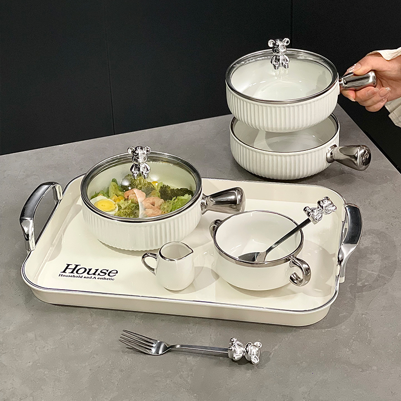 高颜值一人食陶瓷餐具套装 创意女生早餐碗盘汤面碗一小套单人份