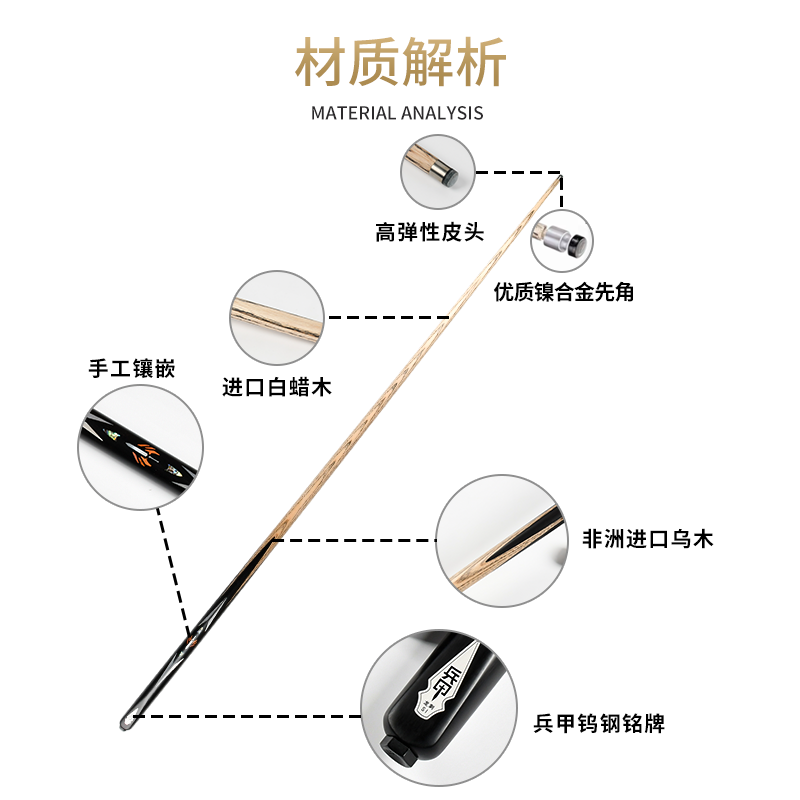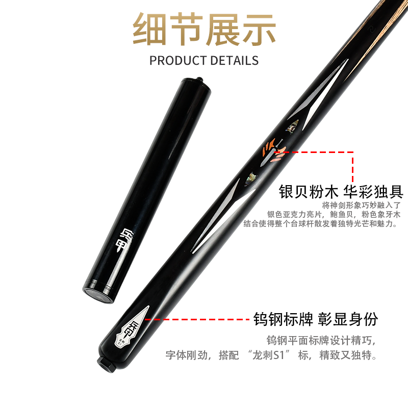 兵甲龙刺S1台球杆小头杆白蜡木手工镶嵌中式八球斯诺克桌球杆