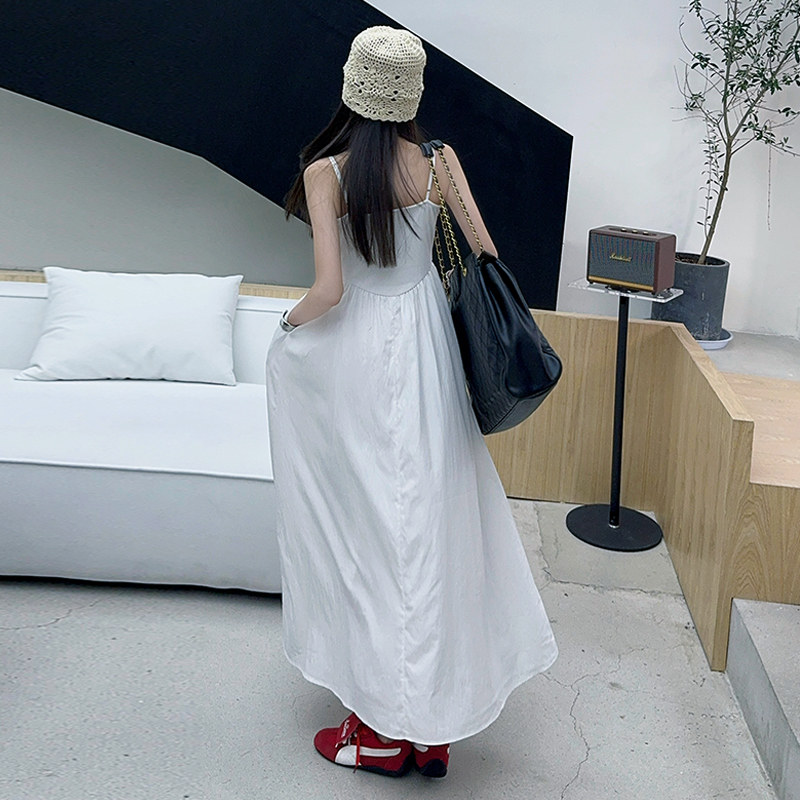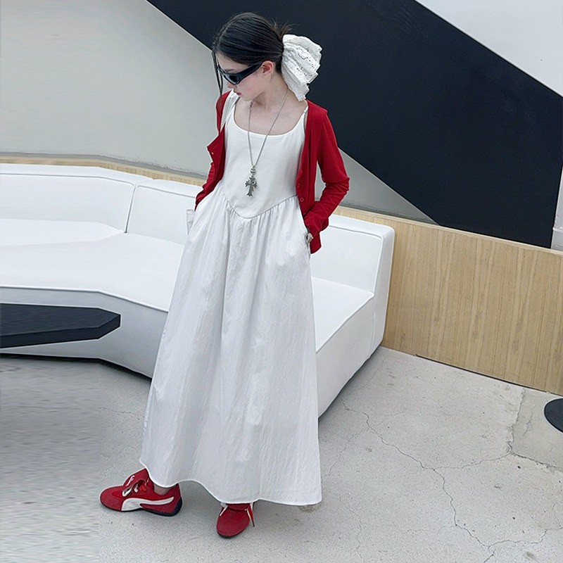 女童连衣裙夏季白色纯棉儿童公主裙大童夏装裙子薄吊带长裙亲子装