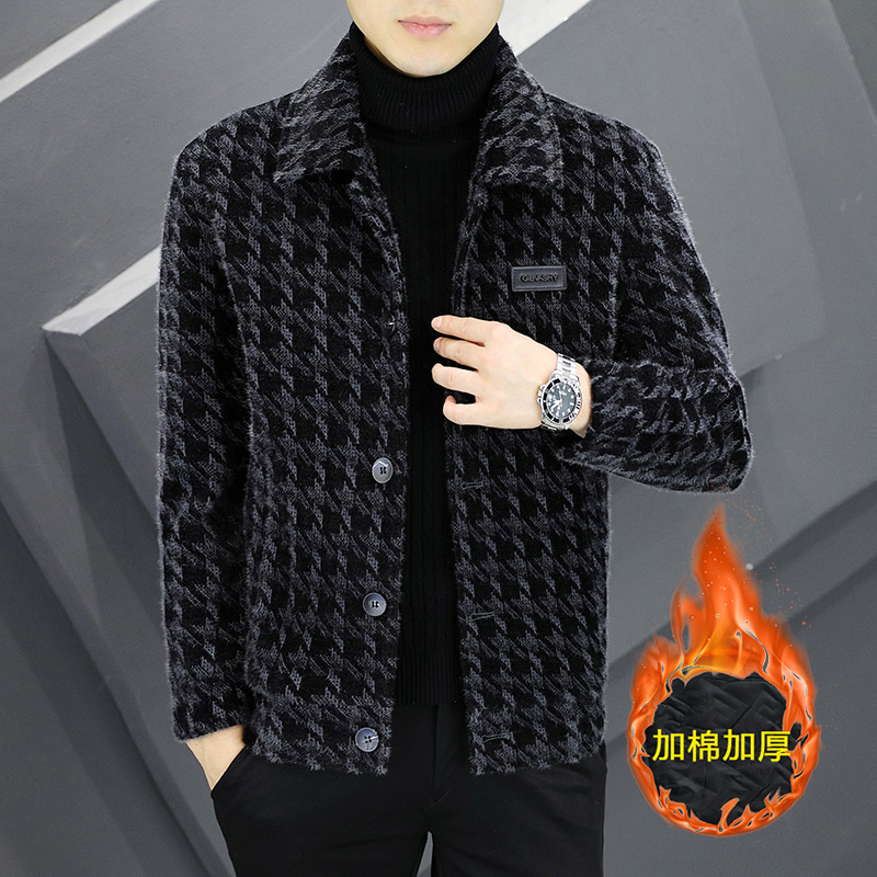 秋冬季金貂绒夹克男士潮流修身加厚加棉外套痞帅休闲短款呢子风衣