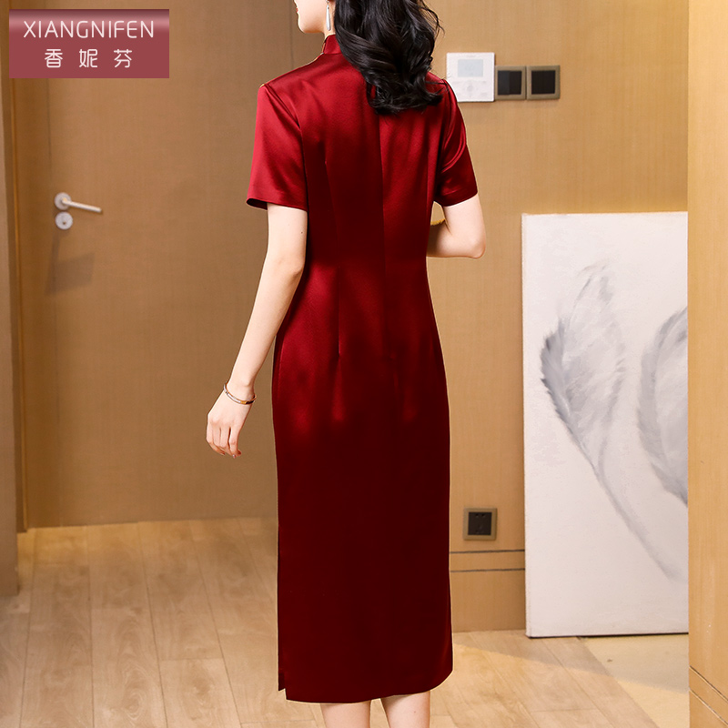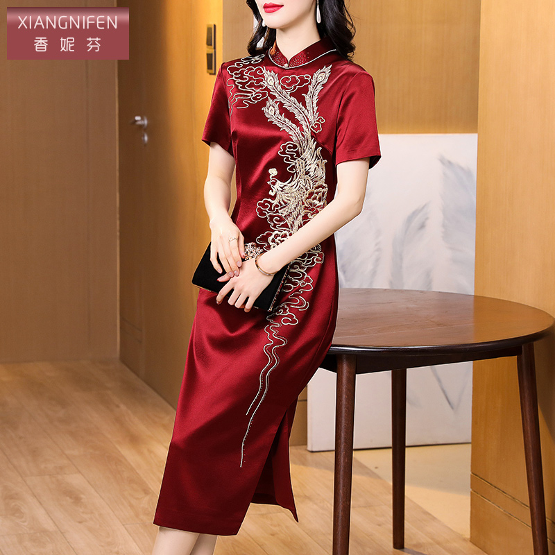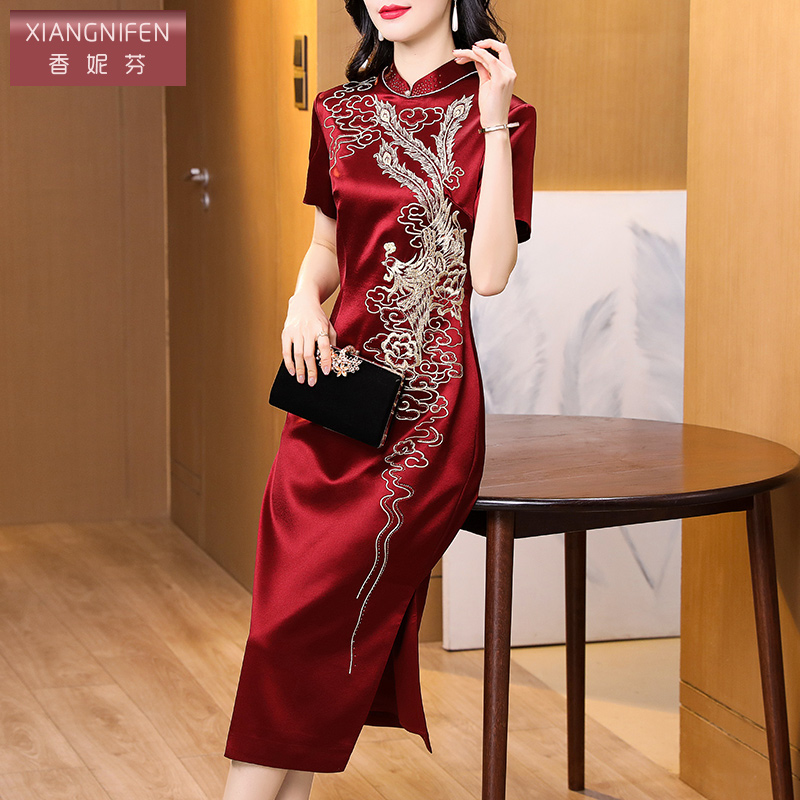 香妮芬喜妈妈礼服旗袍连衣裙女2025夏季新款高端醋酸喜婆婆婚宴装