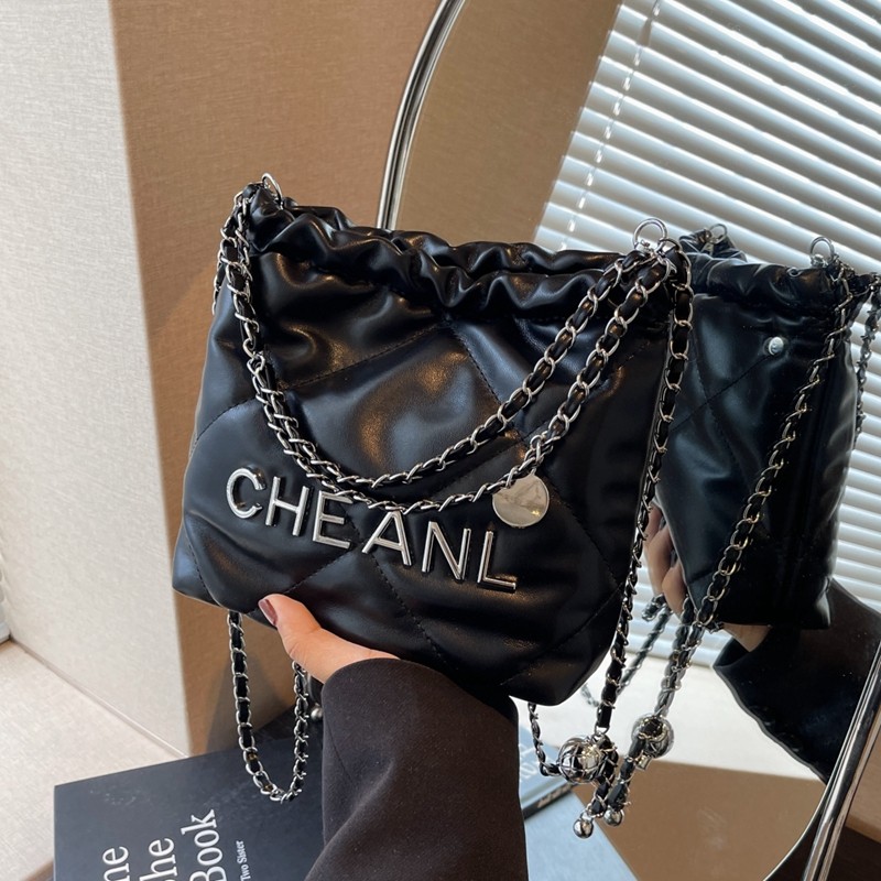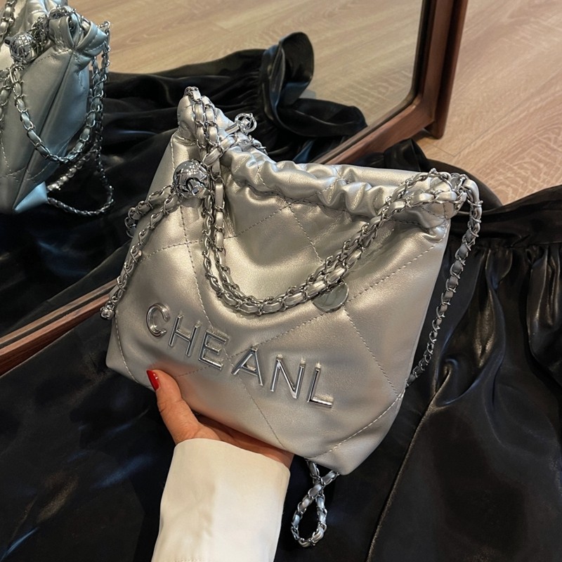 小香风菱格链条包包女包2025新款秋冬斜挎包韩系高级感百搭水桶包