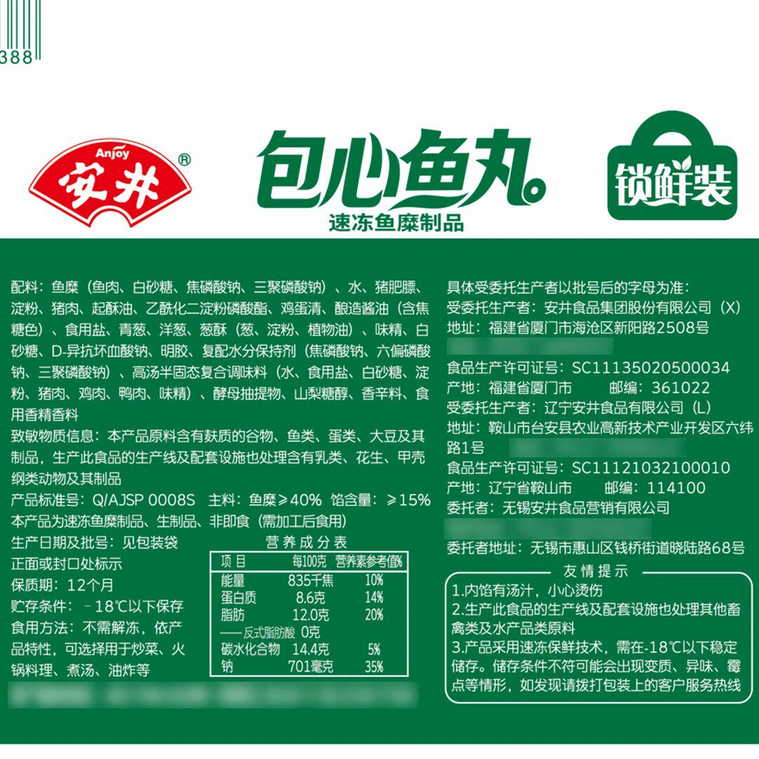 安井正品火锅丸包心鱼丸240g