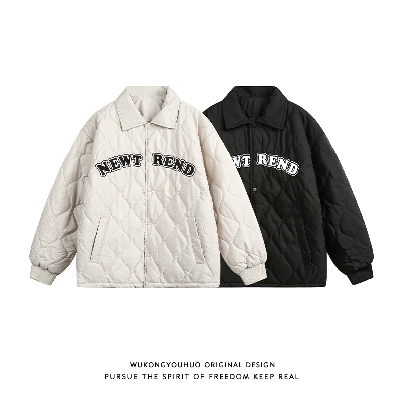 悟空有货潮牌日系刺绣葫芦纹绗线翻领棉衣男冬季复古情侣保暖棉服