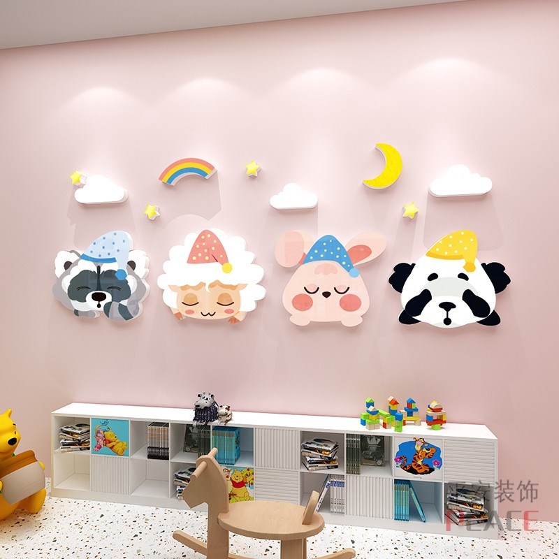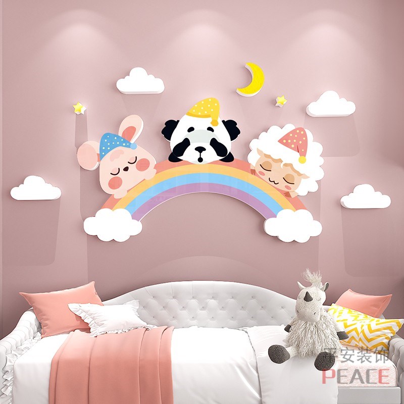 儿童房墙面装饰卡通动物女孩卧室床头背景墙壁自粘布置3d立体墙贴