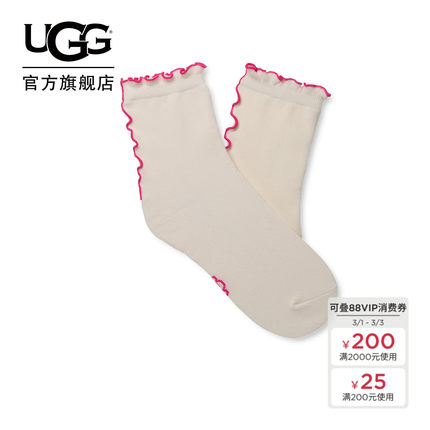 UGG波浪卷边装饰卡辛莴苣后跟袜