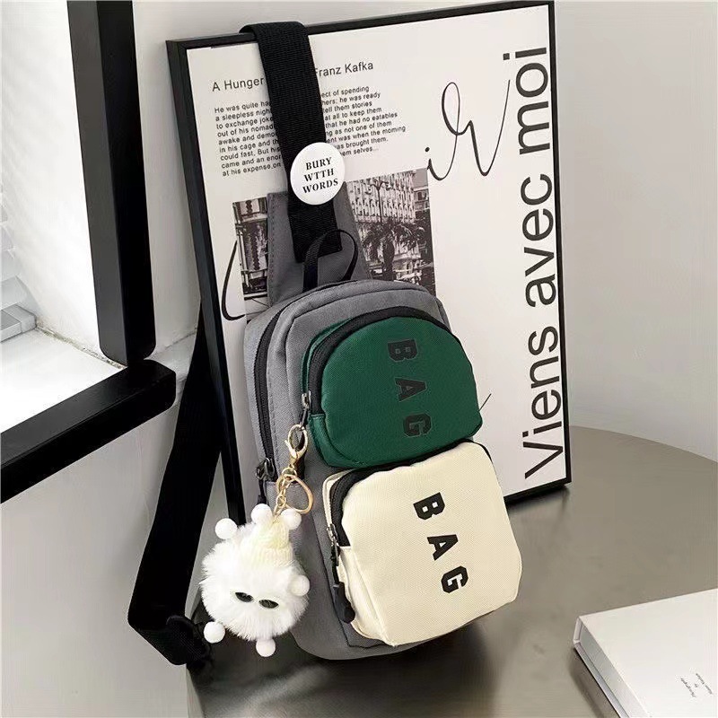2025新款潮牌ins撞色胸包男士时尚运动斜挎包个性工装手机腰包女