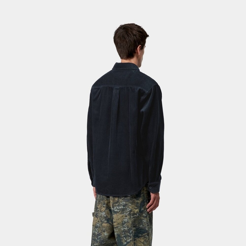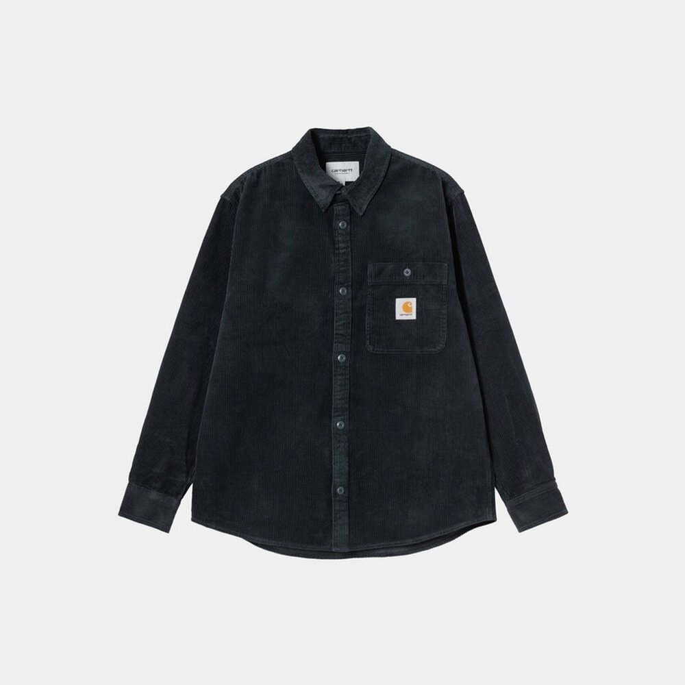 自营欧洲直邮Carhartt WIP Flint男士深夜蓝棉带胸袋长袖衬衫