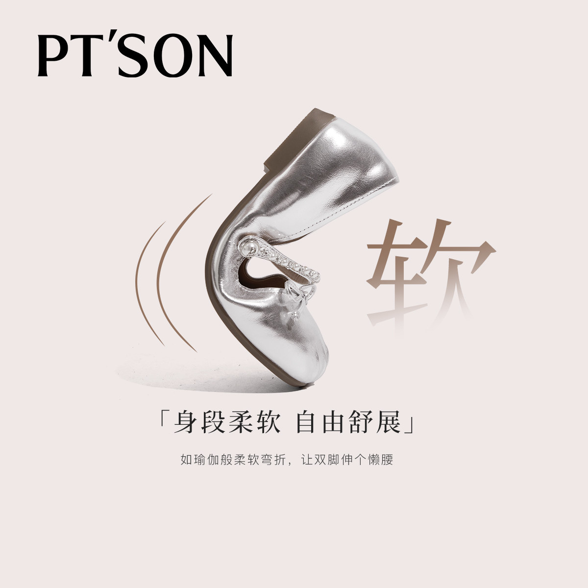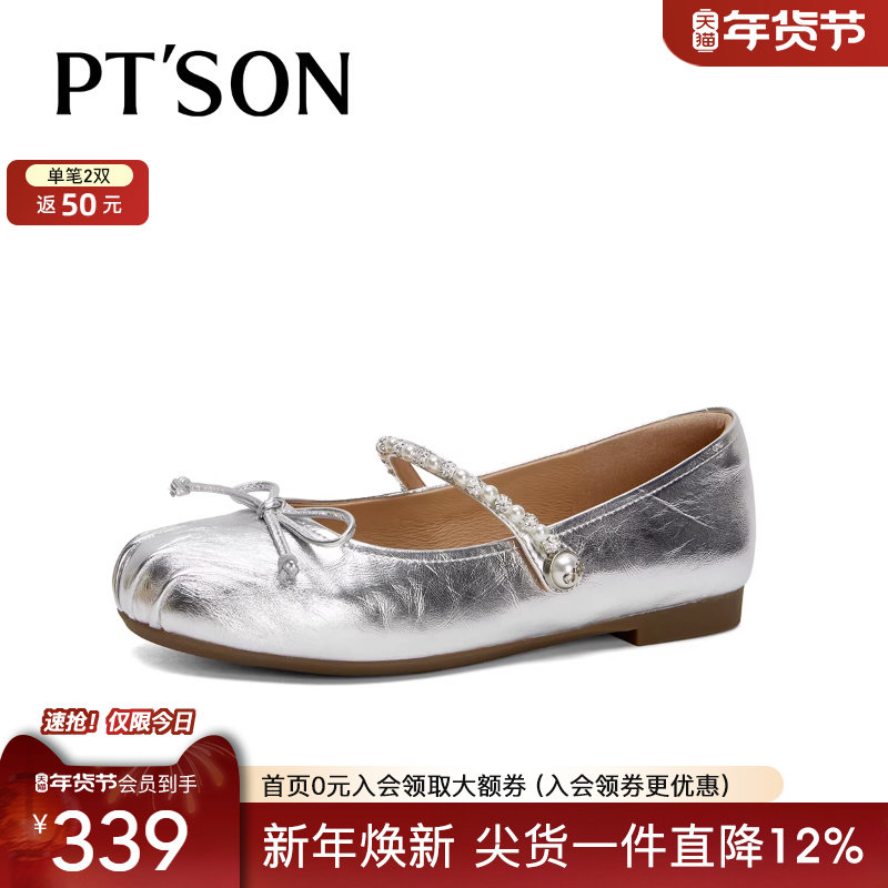 王子璇同款月光芭蕾鞋女百田森2025软底银色玛丽珍不累脚真皮单鞋