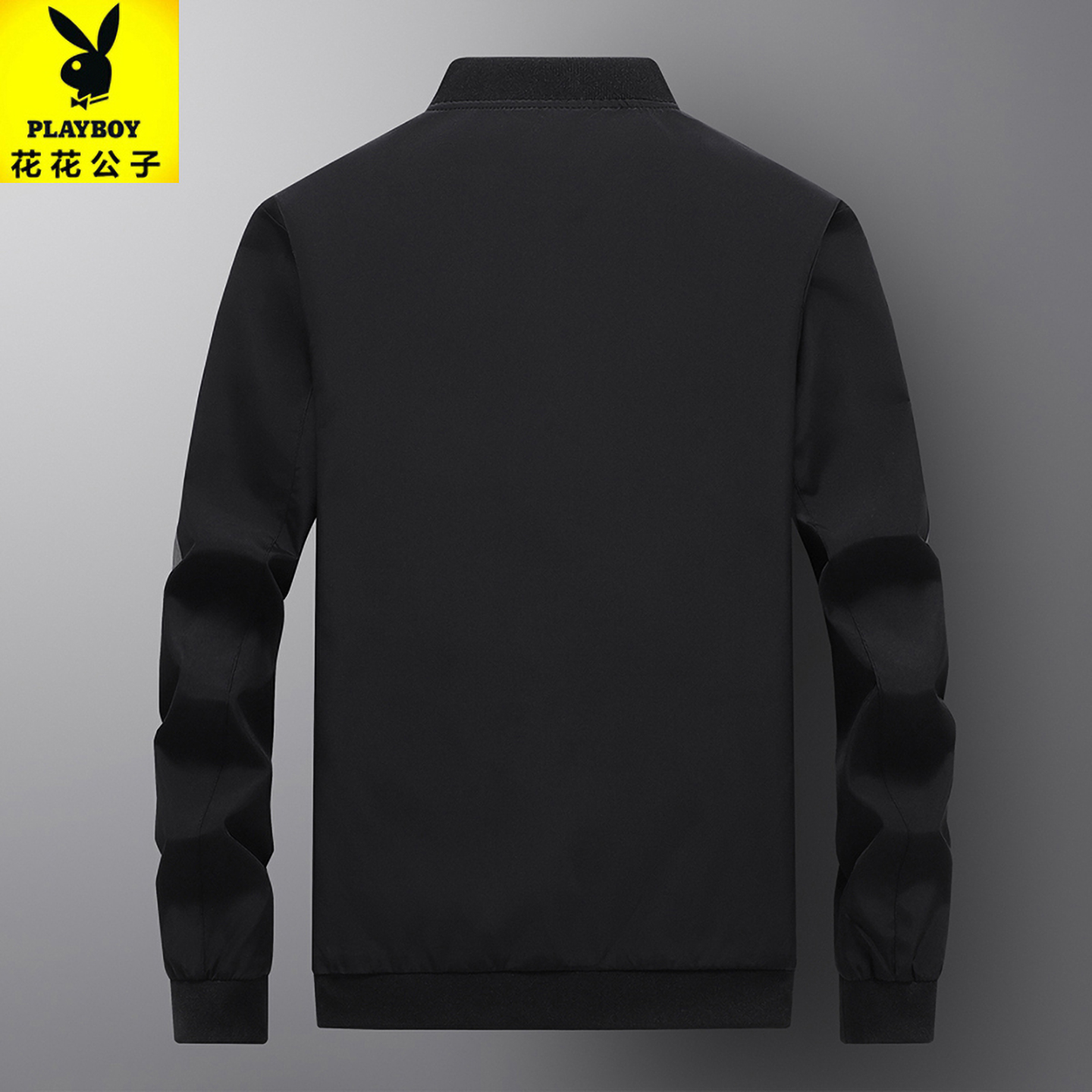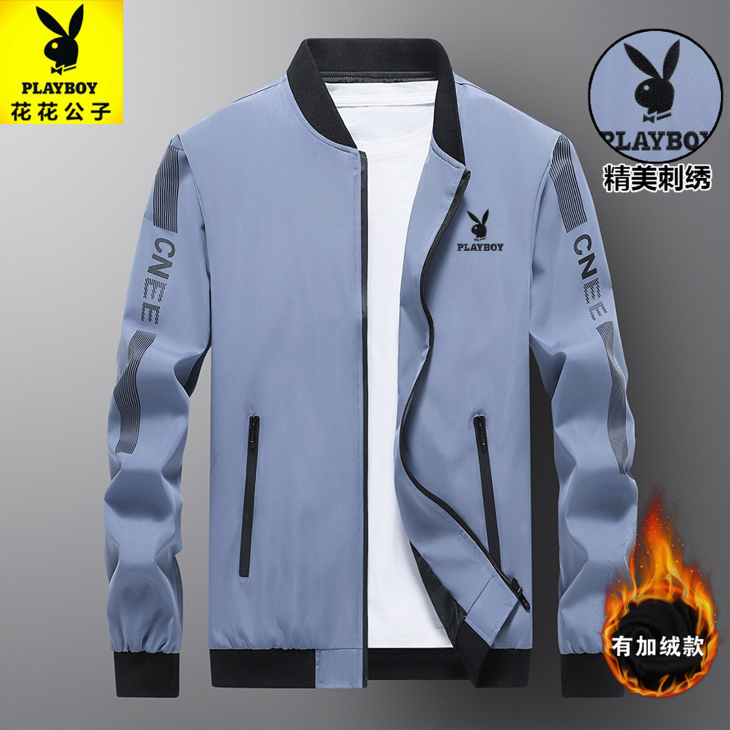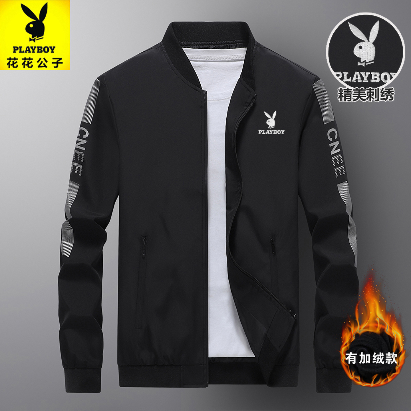 花花公子男休闲秋冬外套夹克新款刺绣加绒中青年立领风衣上衣通勤
