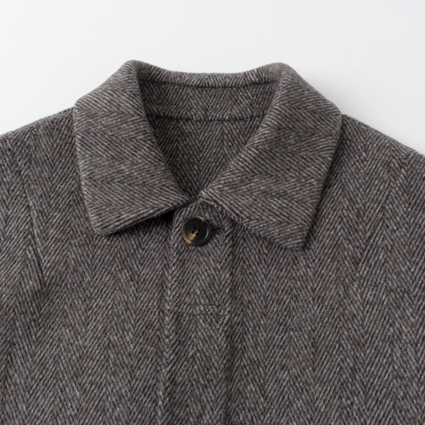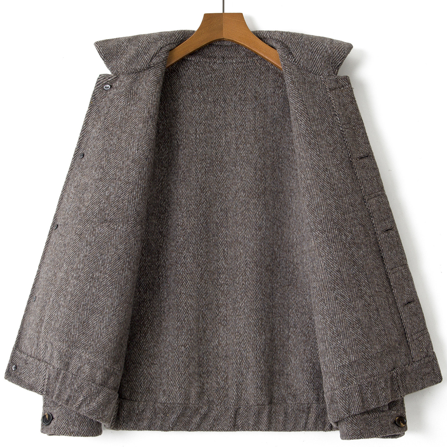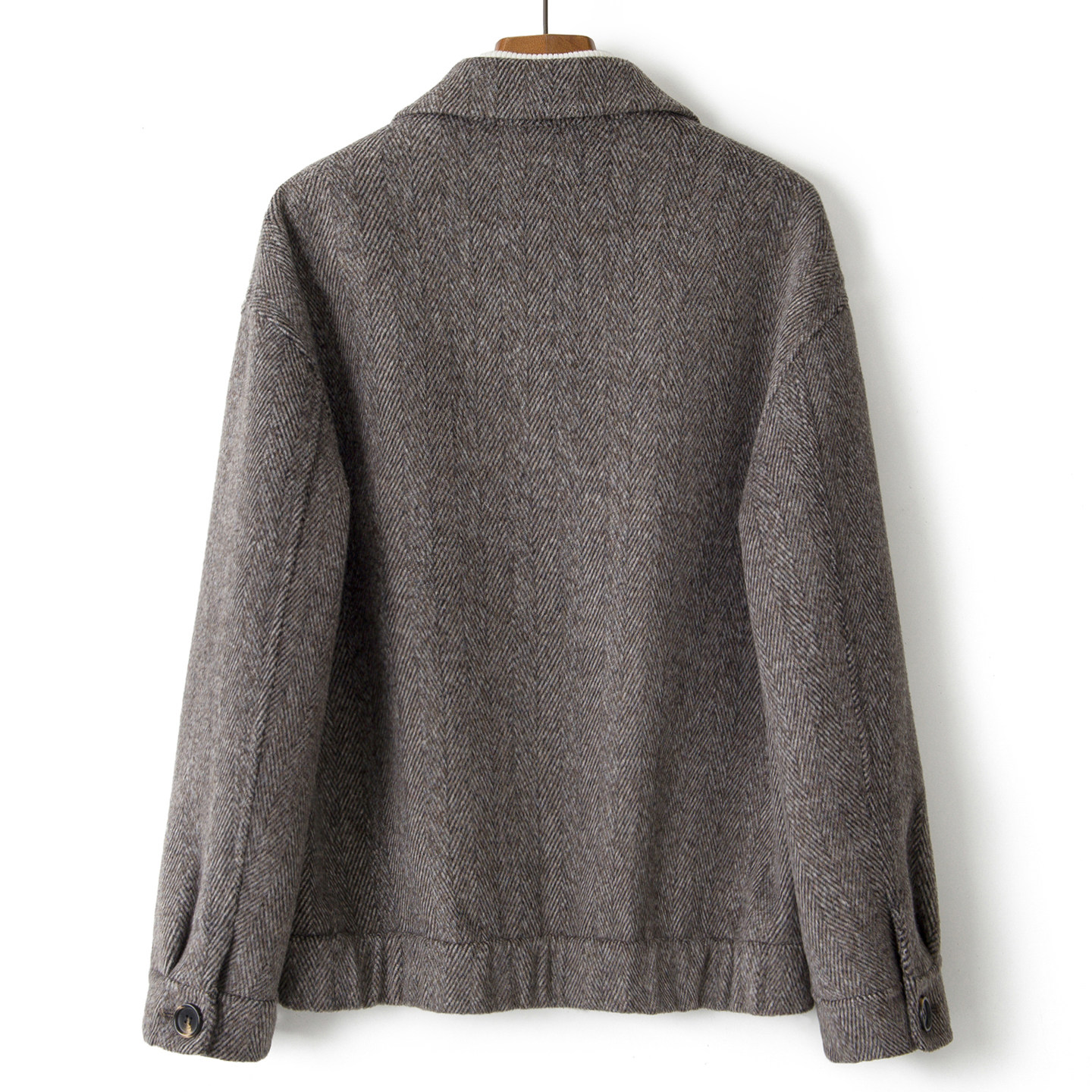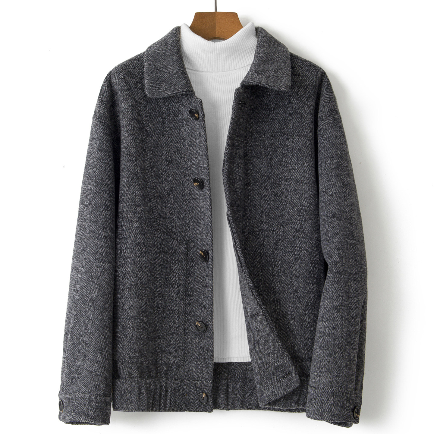 高级感秋冬双面羊毛夹克男士休闲毛呢大衣人字纹翻领青年夹克外套