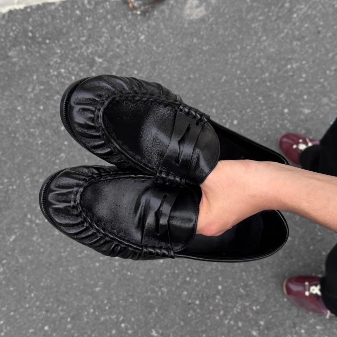 男女同款复古褶皱乐福鞋暗黑小皮鞋懒人单鞋豆豆鞋软皮休闲德比鞋