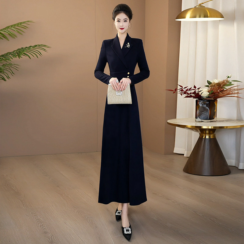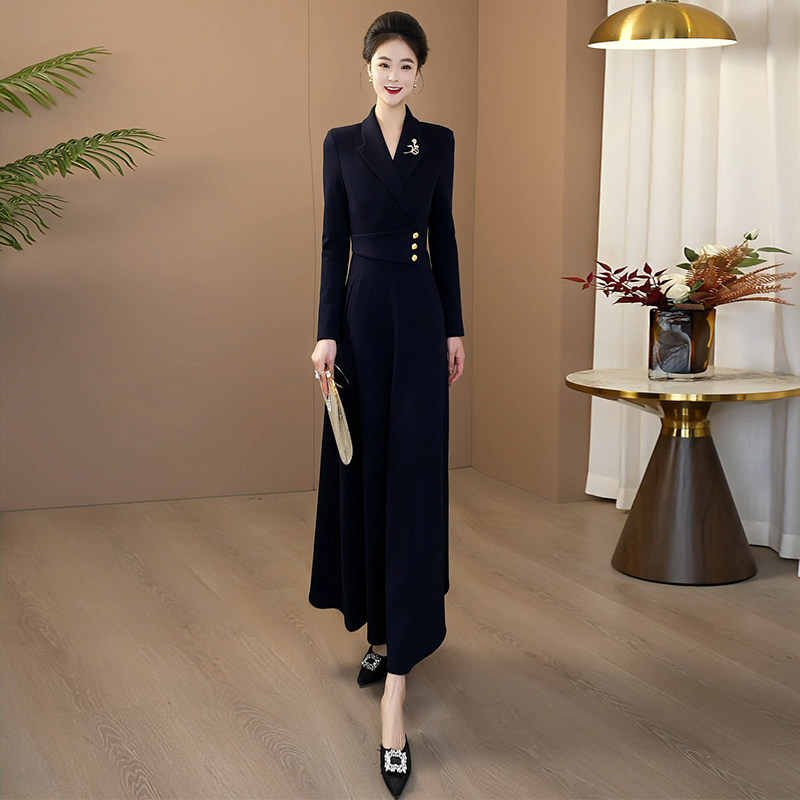 秋冬高端简单大方得体连衣裙2025新款遮肉修身大摆显瘦长裙223