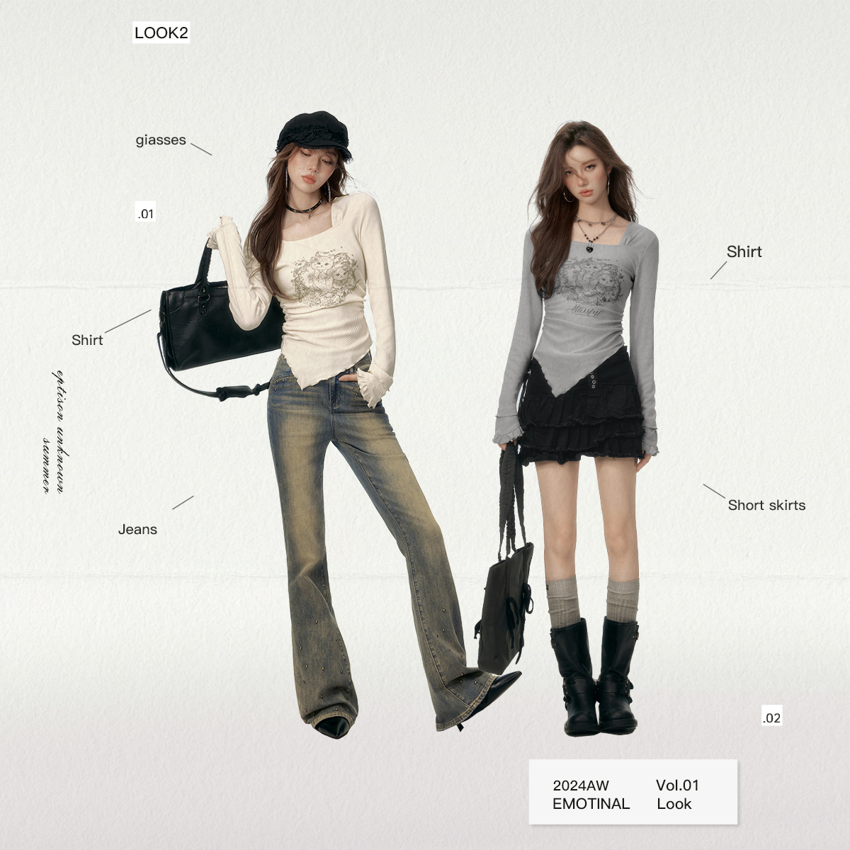 EPTISON长袖针织衫女2025秋季新款低领修身卡通减龄气质纯欲上衣