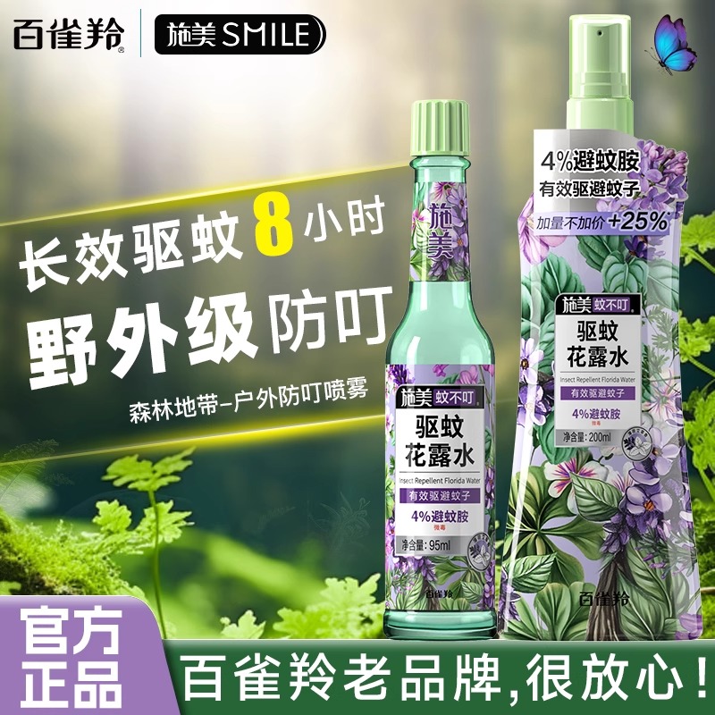 百雀羚花露水驱蚊止痒喷雾清凉留香型国货经典老式玻璃瓶官方正品