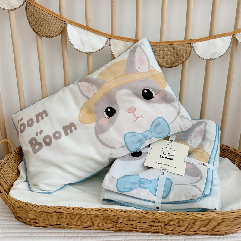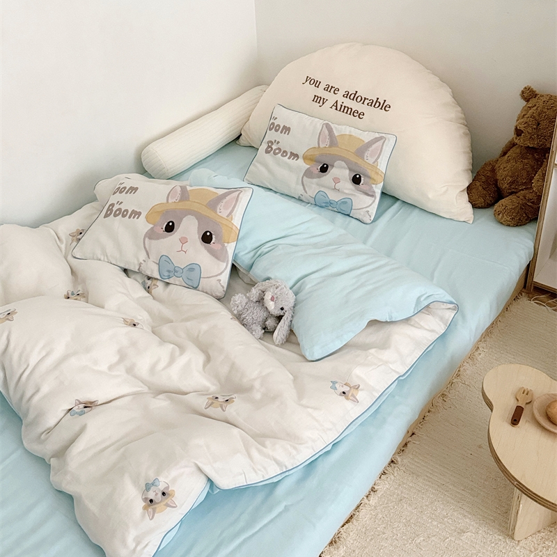 a类儿童被套单件全棉双层纱布可爱兔子幼儿园柔软被罩三件套床品