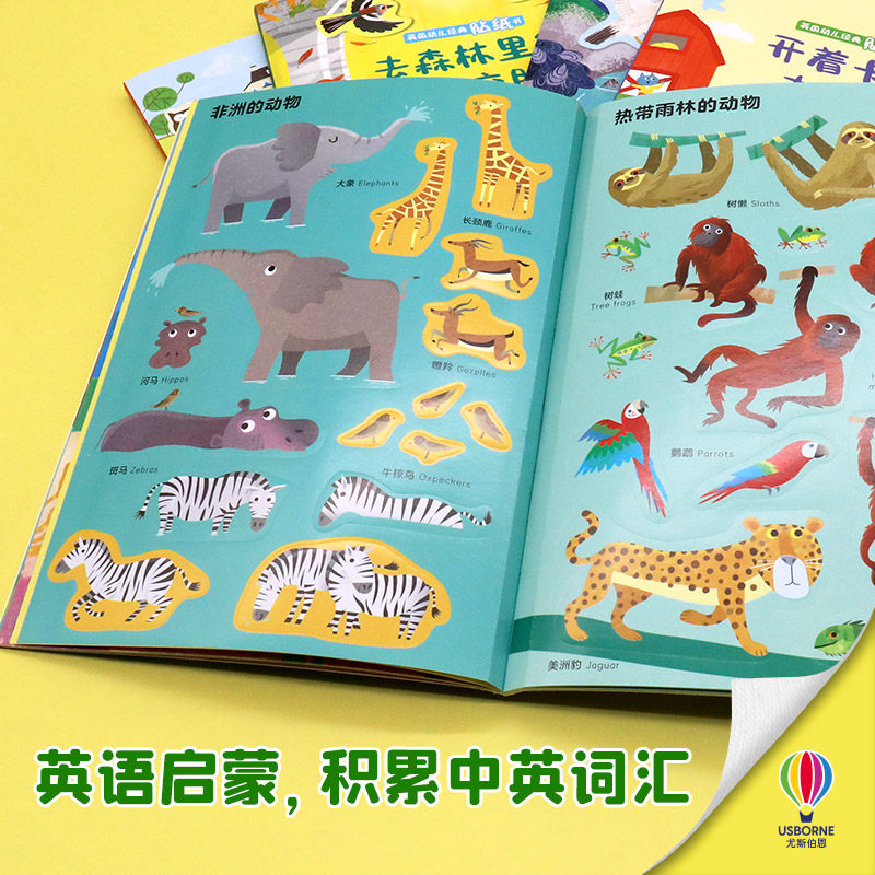 尤斯伯恩幼儿经典贴纸书全套5册2-5岁宝宝游戏书培养孩子动手能力