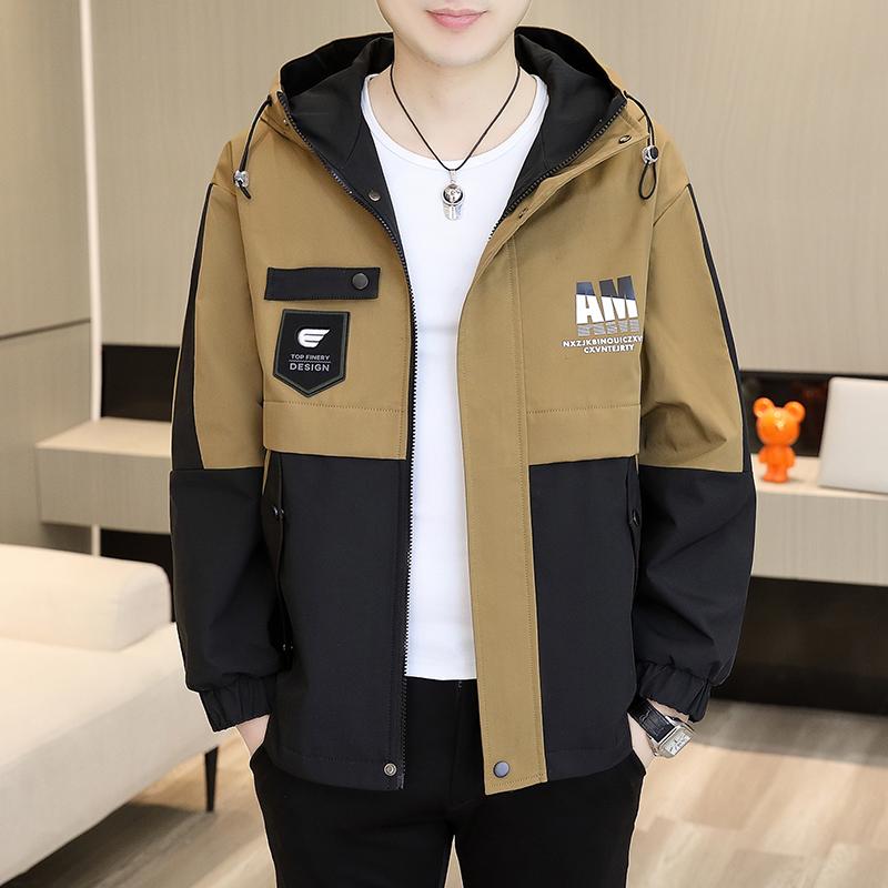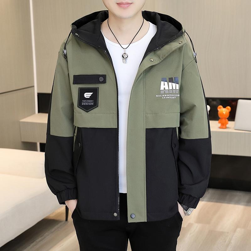 春秋男士外套潮流韩版工装夹克男休闲连帽冲锋衣薄款宽松男装褂子