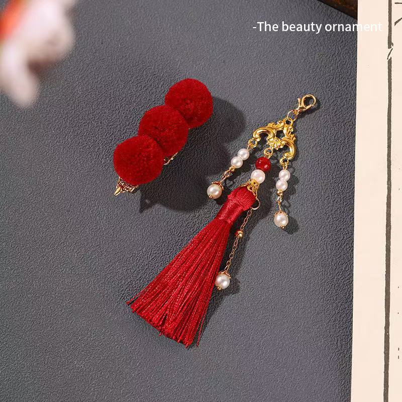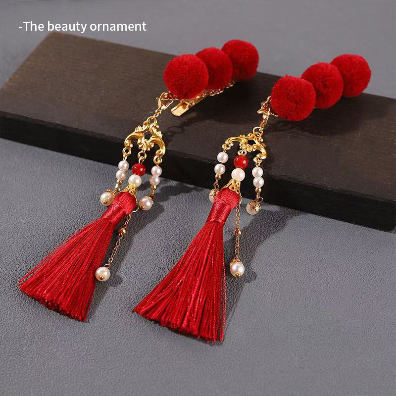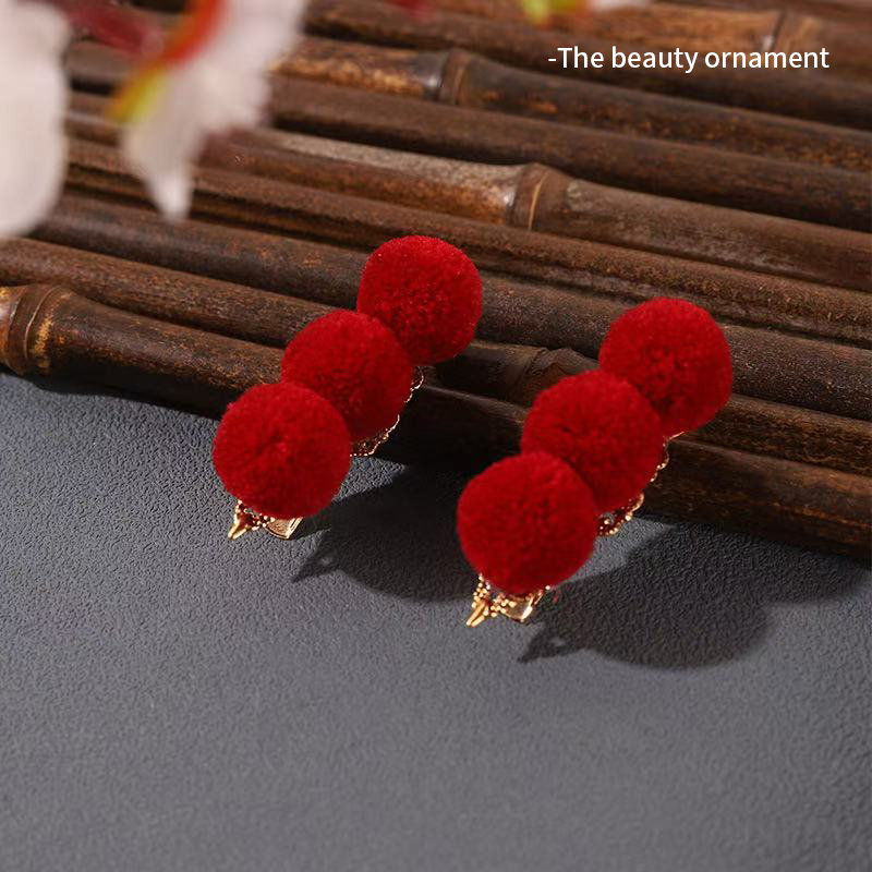 新年宋雨琦同款发夹糖葫芦红色流苏毛球夹子女儿童丸子头发卡头饰