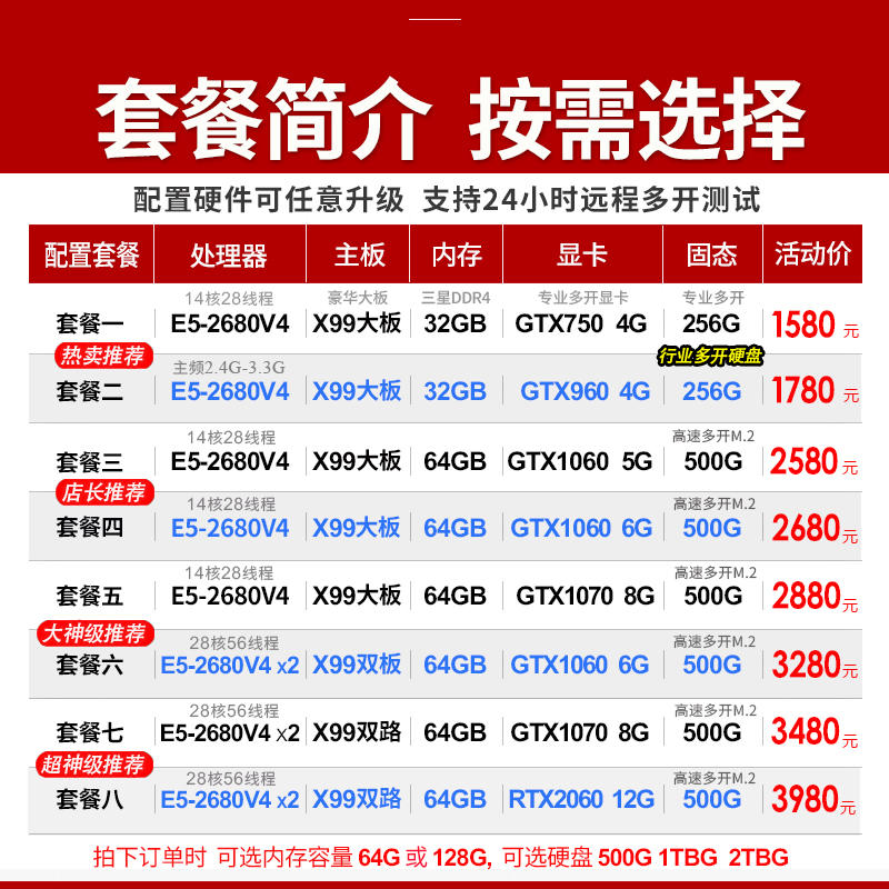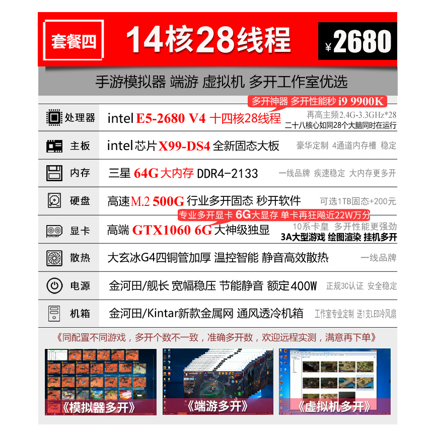 至强E5电脑主机2680V4游戏工作室多开模拟器双路服务器搬砖组装机