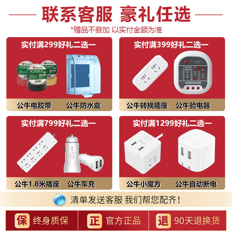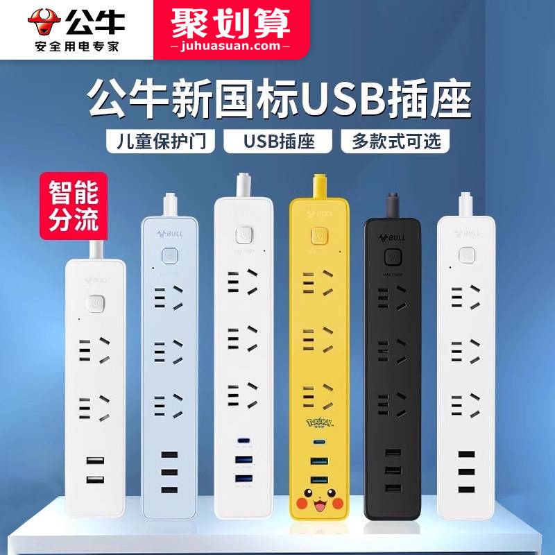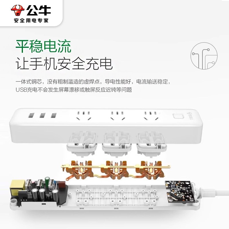 公牛插座带usb接口充电器家用床头电插排插板带线多功能拖接线板