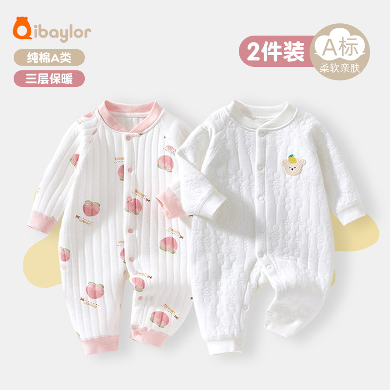 2件装 婴儿衣服春秋冬季宝宝连体衣纯棉夹棉加厚哈衣爬服加棉冬装