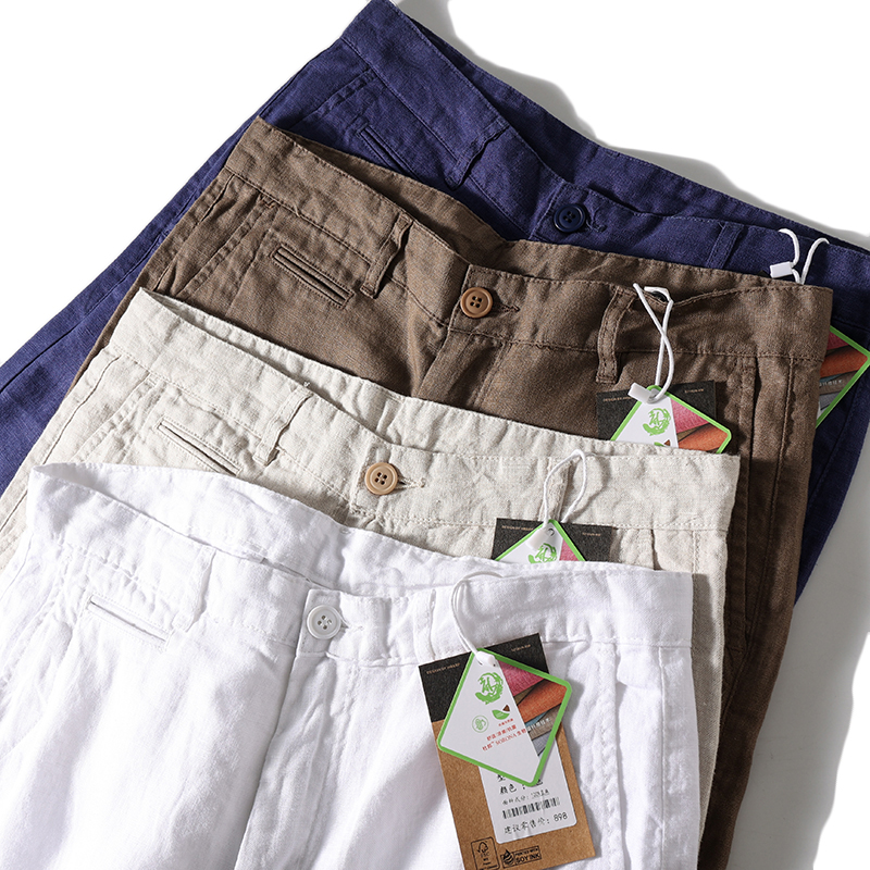 纯亚麻短裤男夏季薄款宽松夏天男裤休闲五分裤外贸出口男装裤子