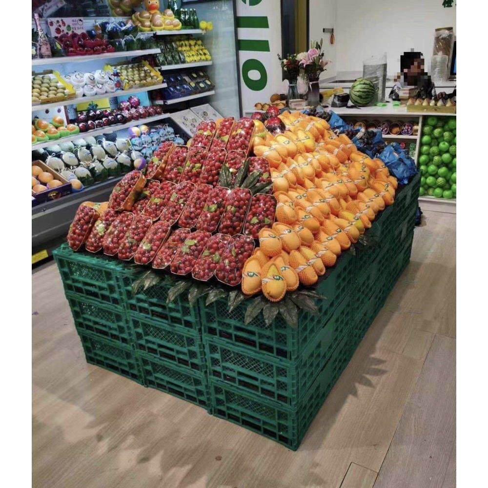 塑料折叠筐水果筐蔬菜框可折叠台阶超市水果店展示架货架加厚绿色