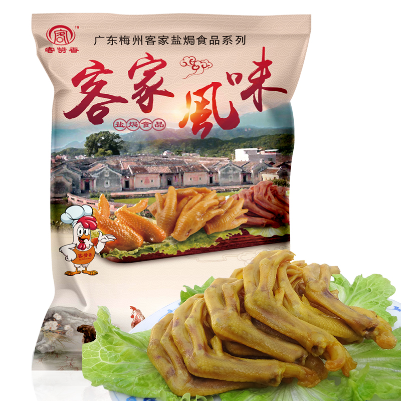 广东梅州客赞香客家特产盐焗鸭脚小吃卤水五香鸭爪零食独立局鸭掌