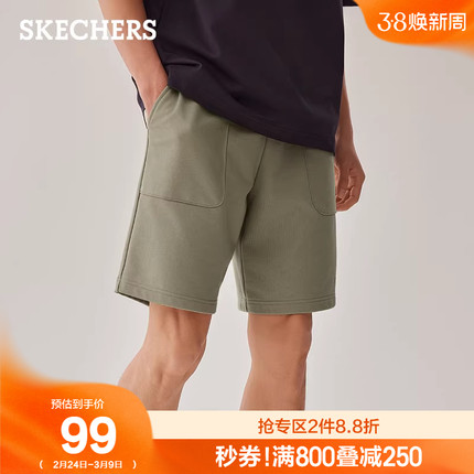 Skechers斯凯奇新款夏季男士毛圈布针织舒适休闲短裤五分裤