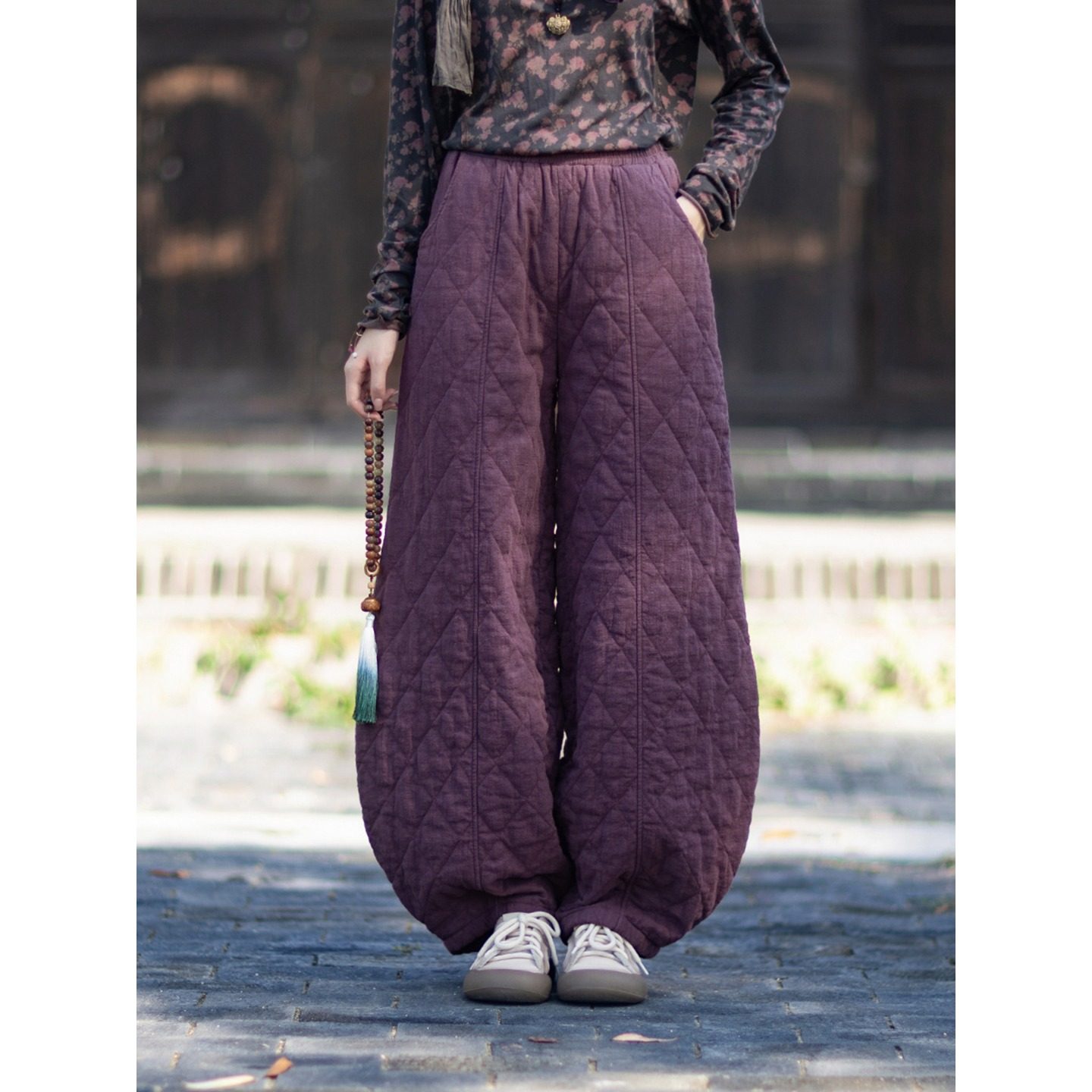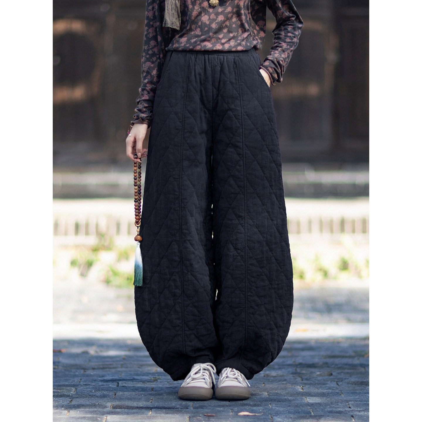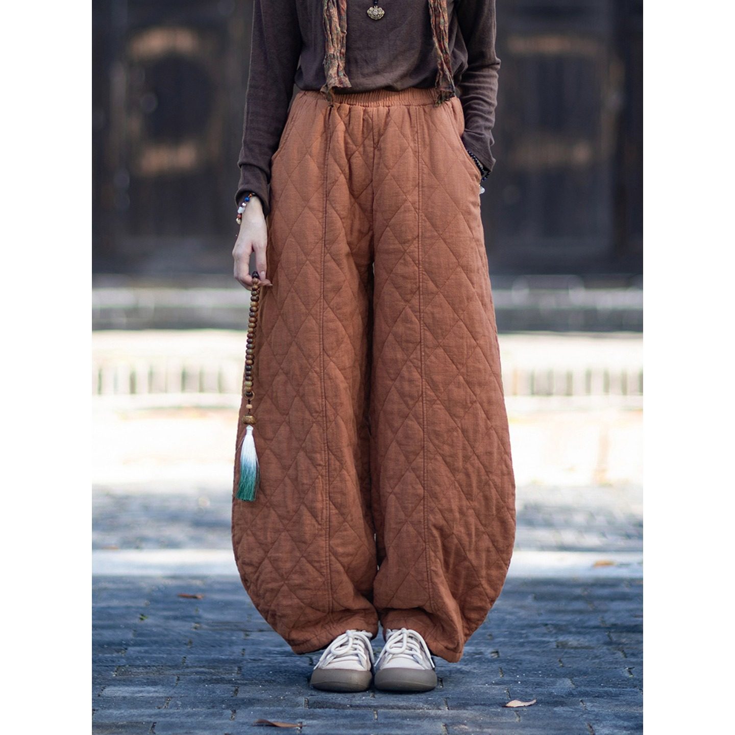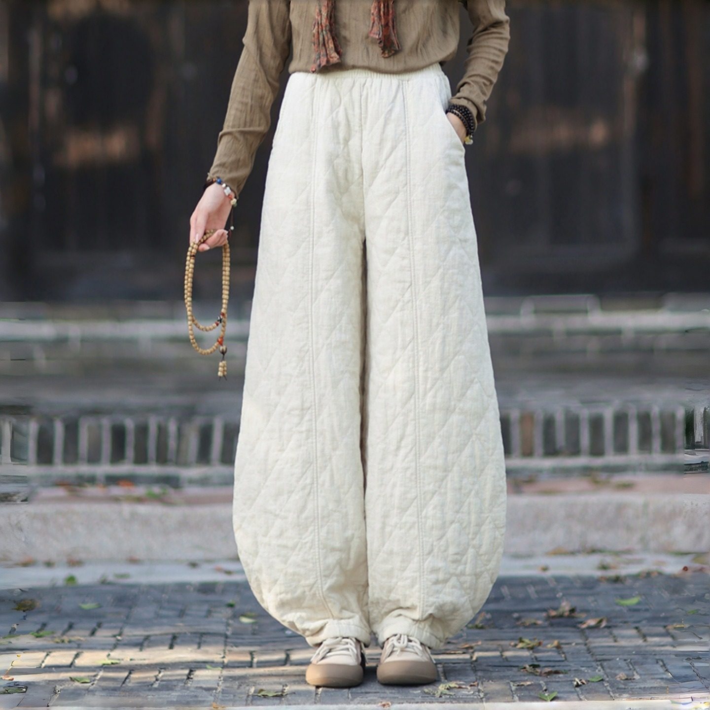 加厚棉麻棉裤夹棉保暖菱格灯笼裤