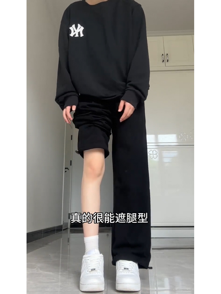 运动裤女秋季阔腿大码黑色裤子胖妹妹女梨形身材遮肉显瘦休闲卫裤