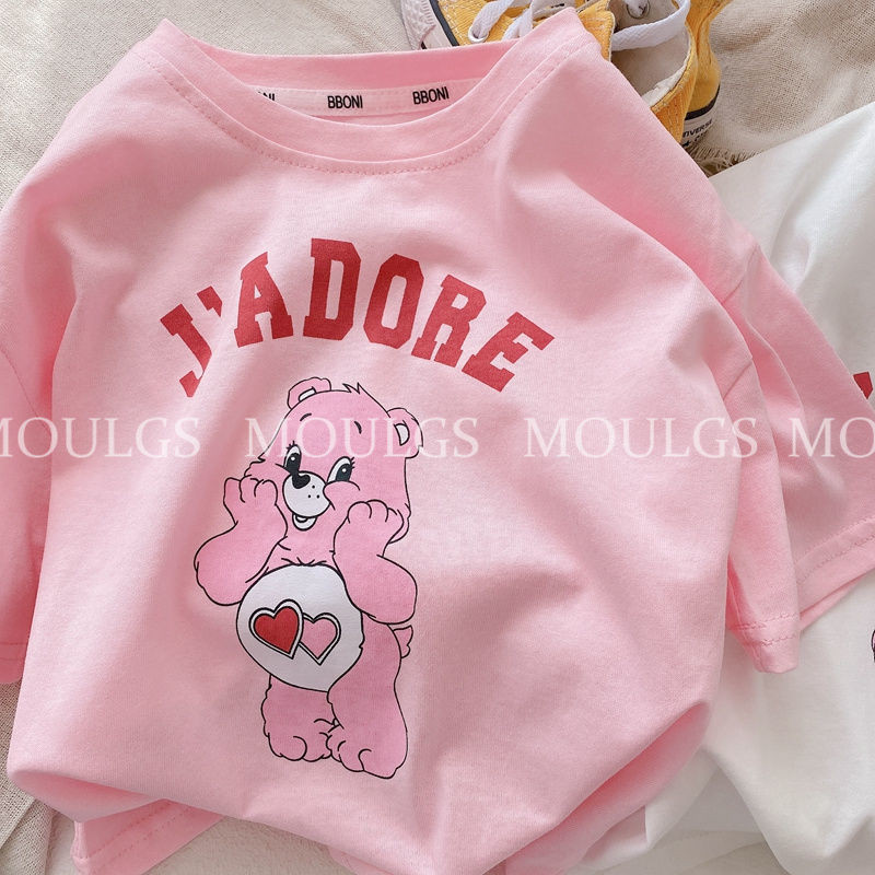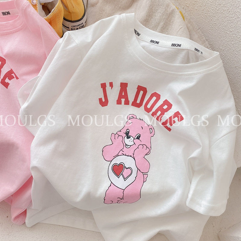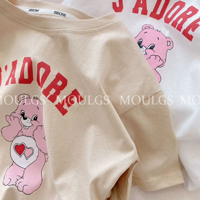 100%纯棉女童短袖T恤夏装中小童韩版童装2025新款夏季慵懒爱心熊
