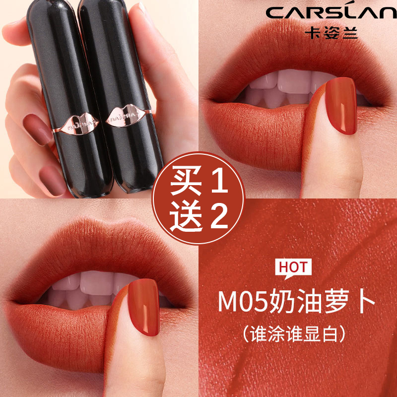 卡姿兰雾吻口红女不掉色不沾杯易上色品牌奶油胡萝卜唇釉套装正品