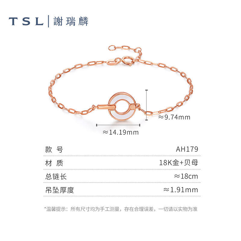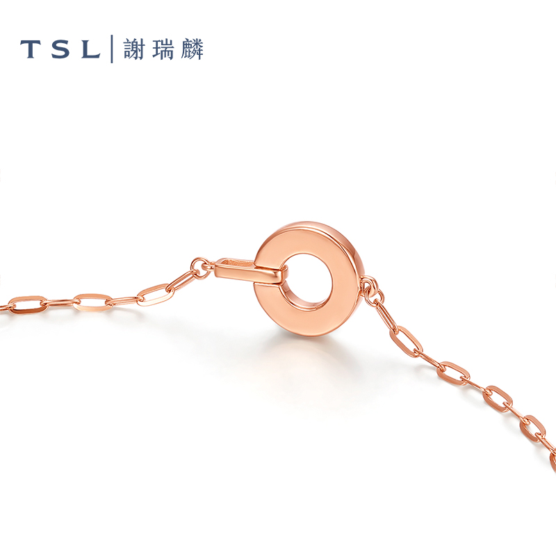 TSL谢瑞麟18K金手链圆环白贝母素金玫瑰金女士AH179