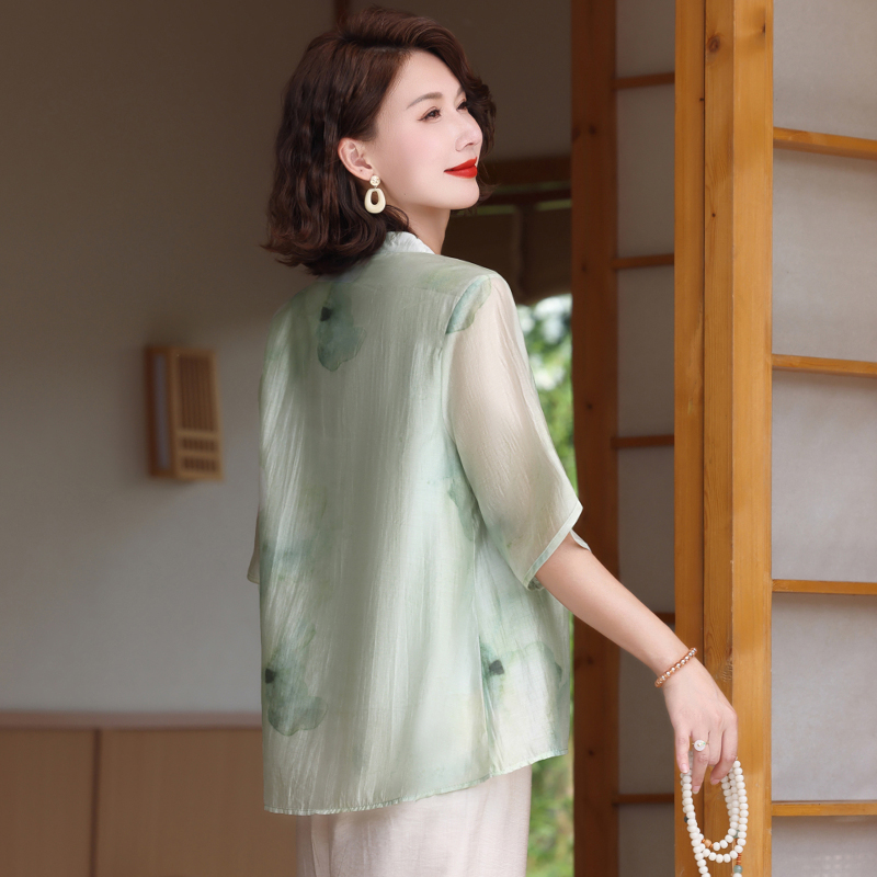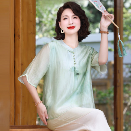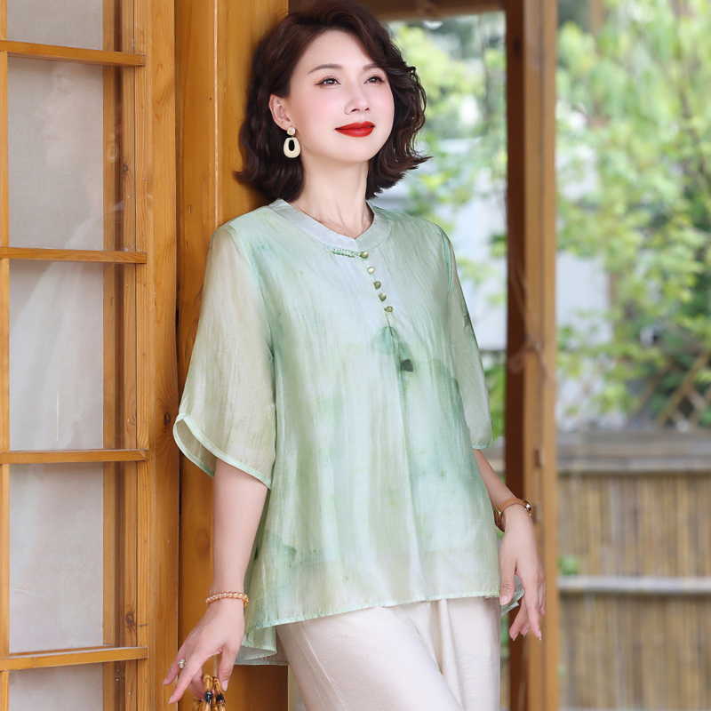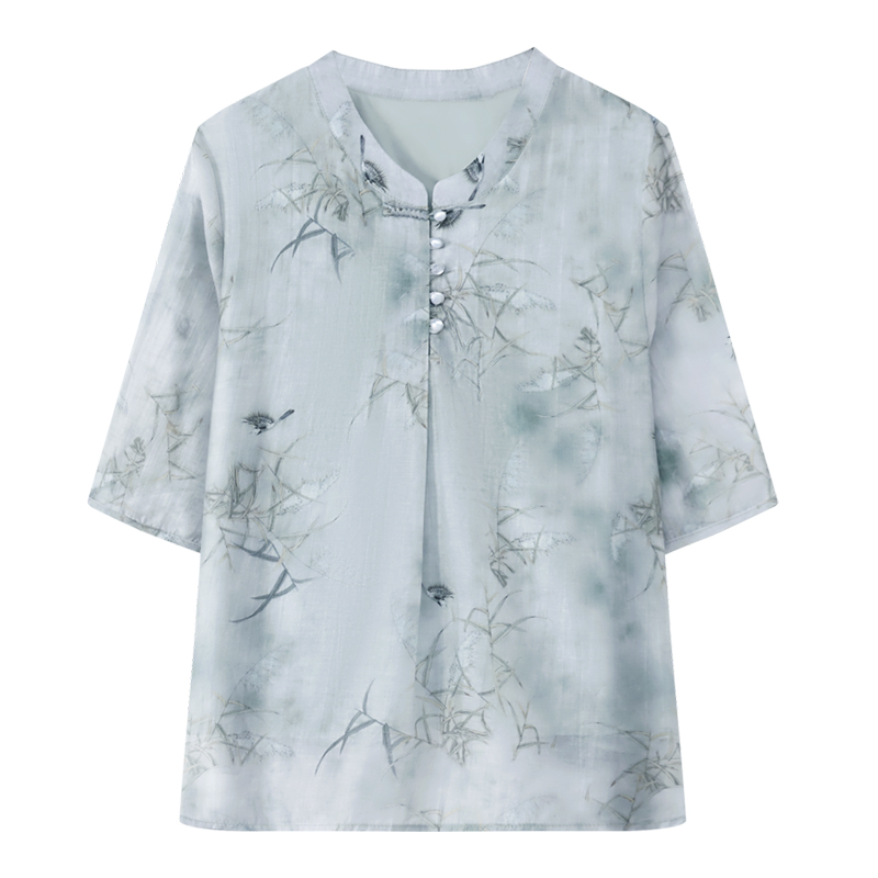 喜卉妈妈夏装洋气减龄短袖t恤中老年时尚女装新中式上衣休闲小衫