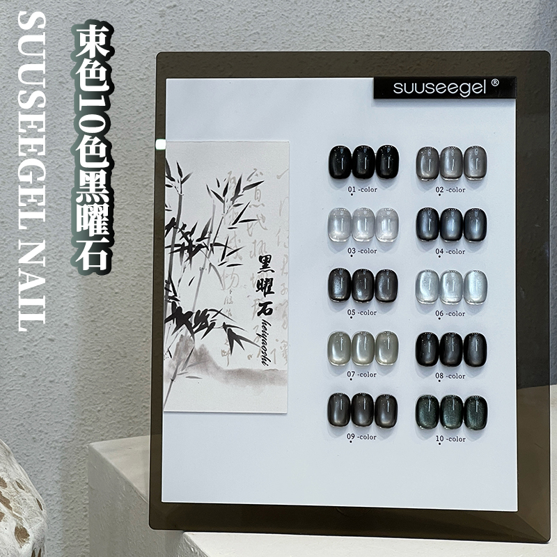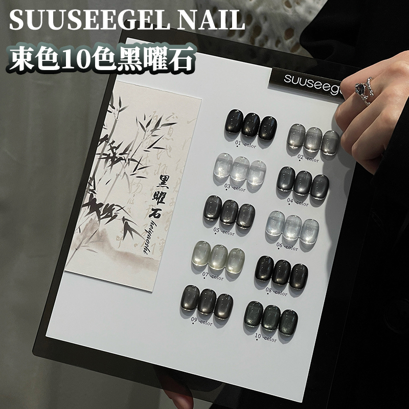 美甲店流行显白束色10色黑曜石玻璃珠晶石瓷白猫眼指甲油胶小套系