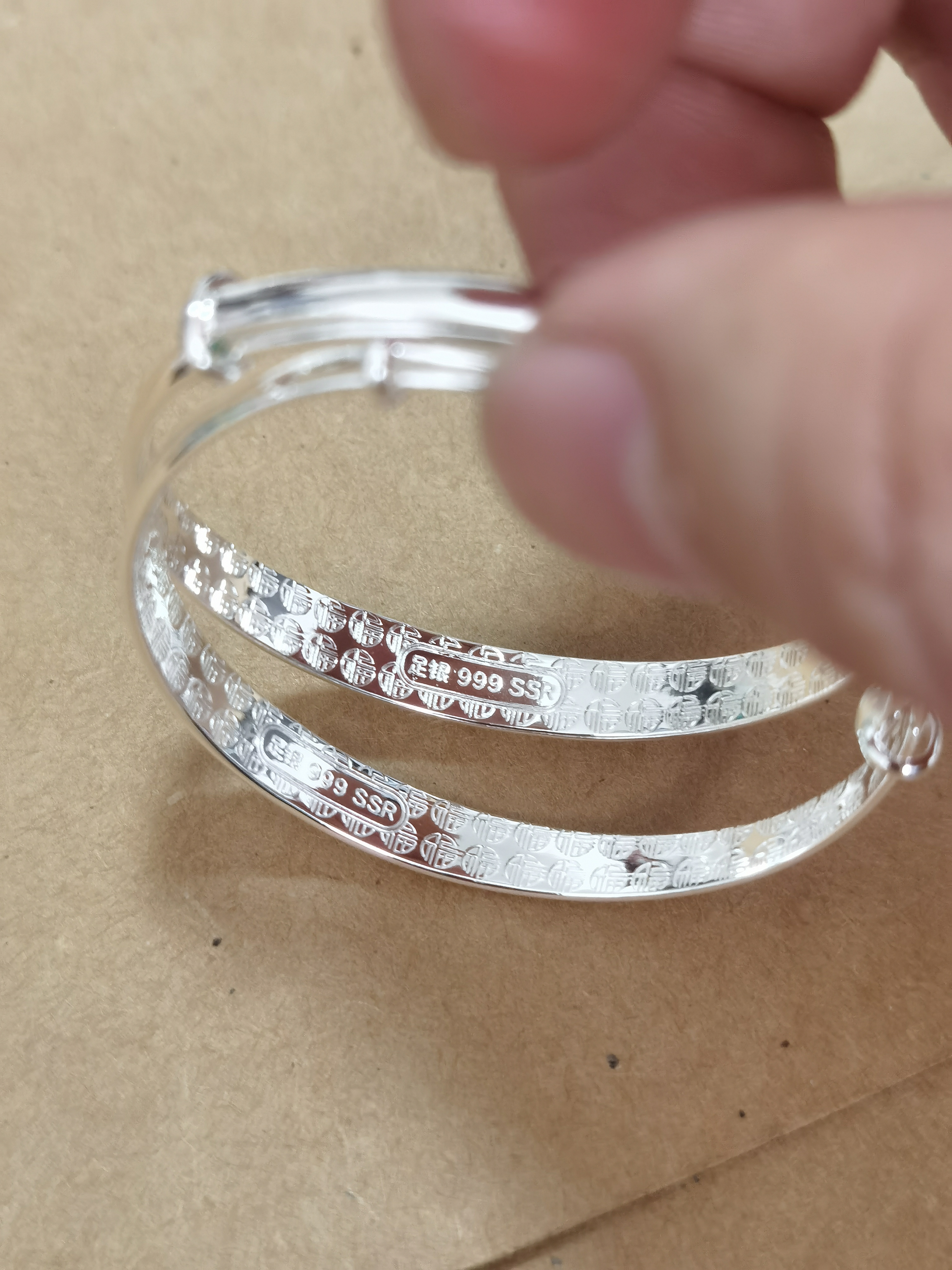 祥云小天使翅膀宝宝纯银手镯999足银一对约16克