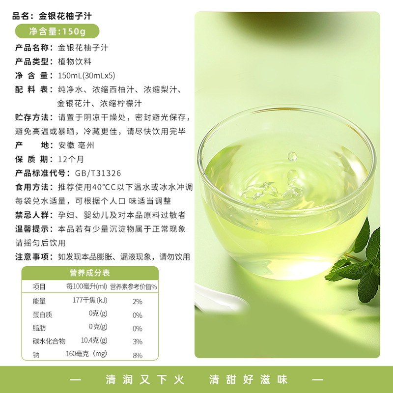 徽隆堂金银花柚子汁袋装泡水消火酸甜独立袋泡冲饮养生花草茶