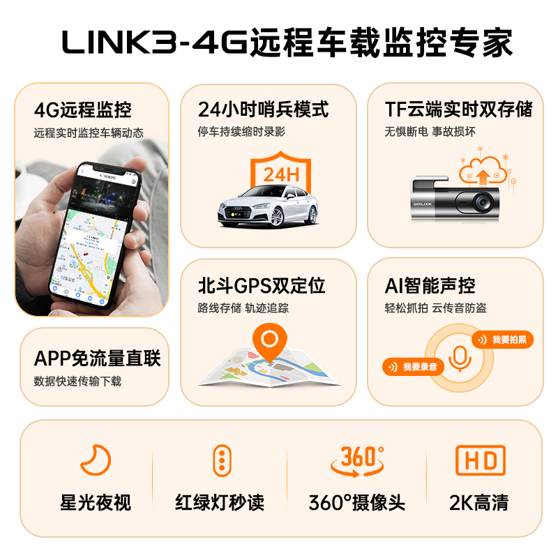 小盯看看LINK3 4G远程监控行车记录仪车载24小时哨兵模式停车监控