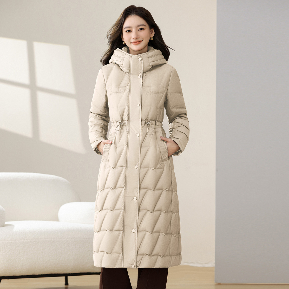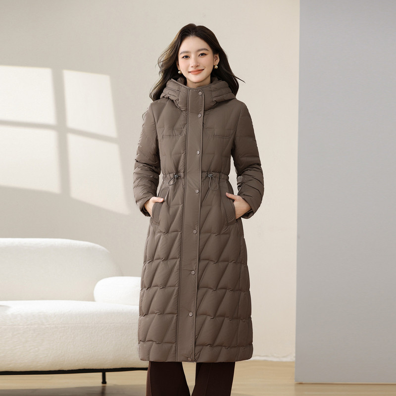 雪中飞2025冬新款女士长款羽绒服连帽加厚保暖收腰斗篷公主甜美