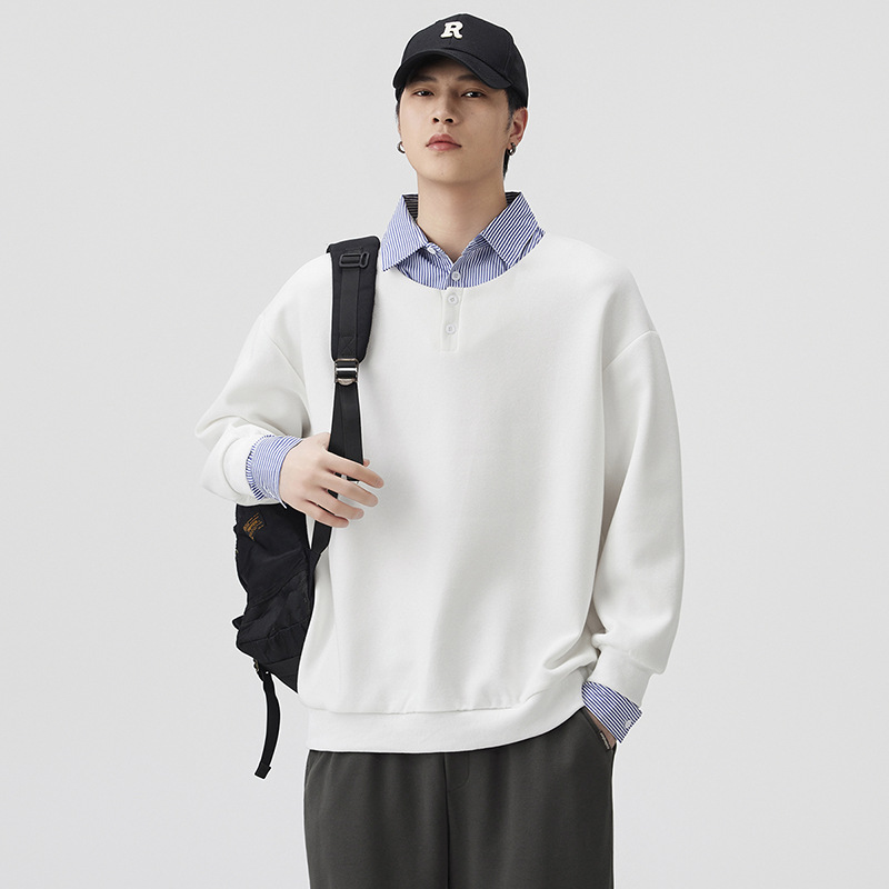 NASA官方联名假两件撞色设计感衬衫领卫衣男春秋新款宽松潮流百搭