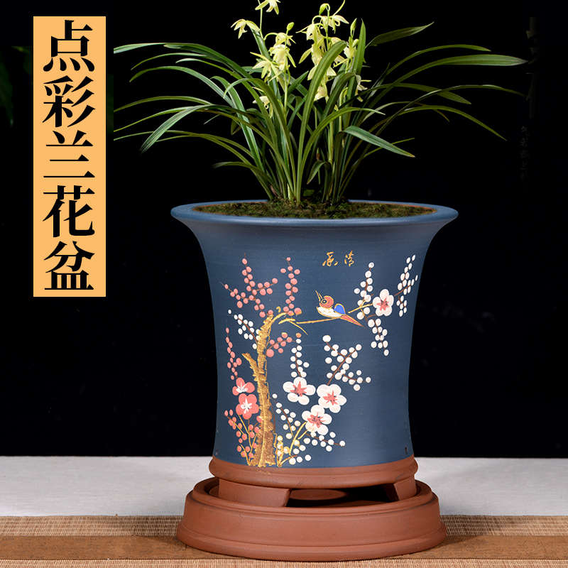 紫砂花盆直筒兰花盆陶瓷花盆特大号兰花盆室内植物花盆盆余间