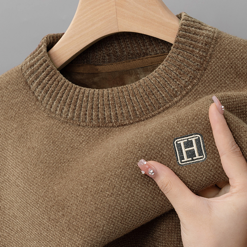 (一体绒)高端圆领毛衣男士加厚