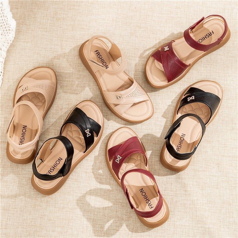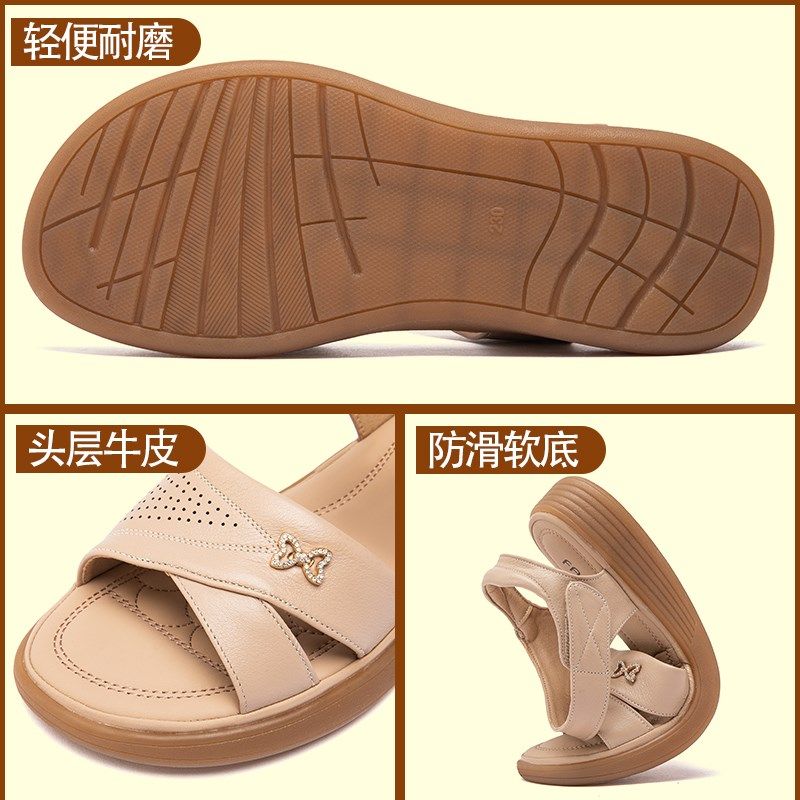 真皮妈妈鞋夏季2025新款中老年软底闰月老人凉鞋女防滑女士不累脚