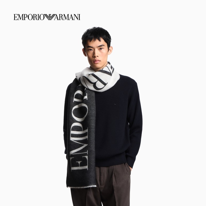 【情人节礼物】EMPORIO ARMANI/阿玛尼冬季新款男绵羊毛混纺围巾