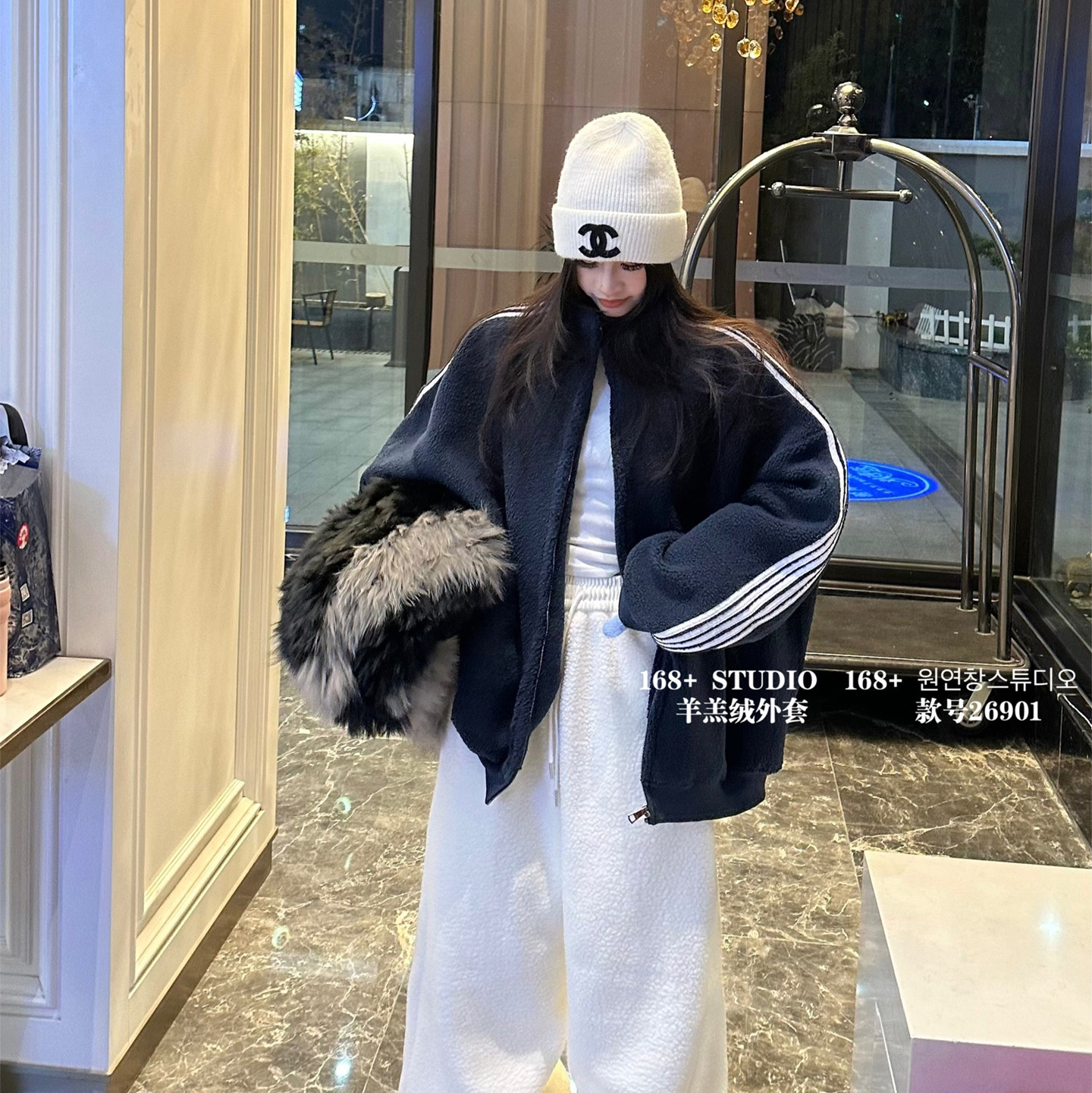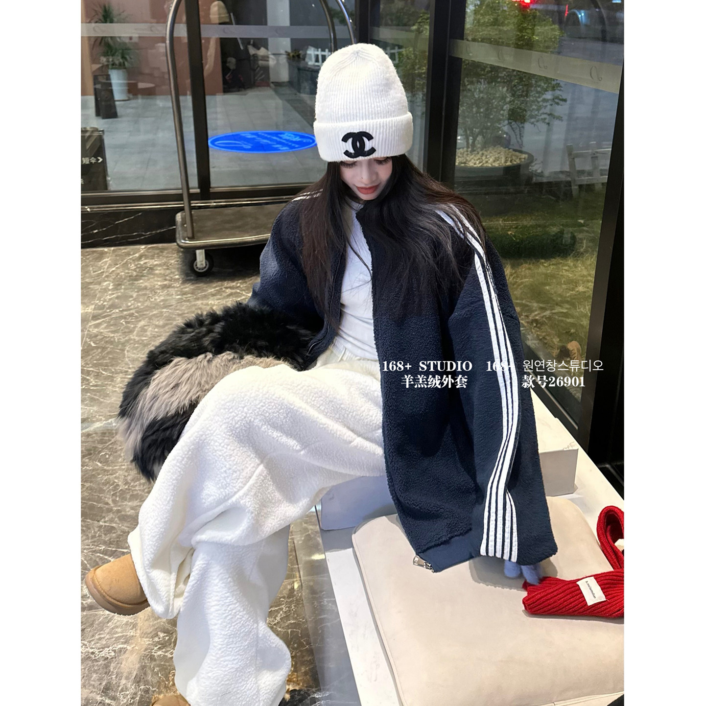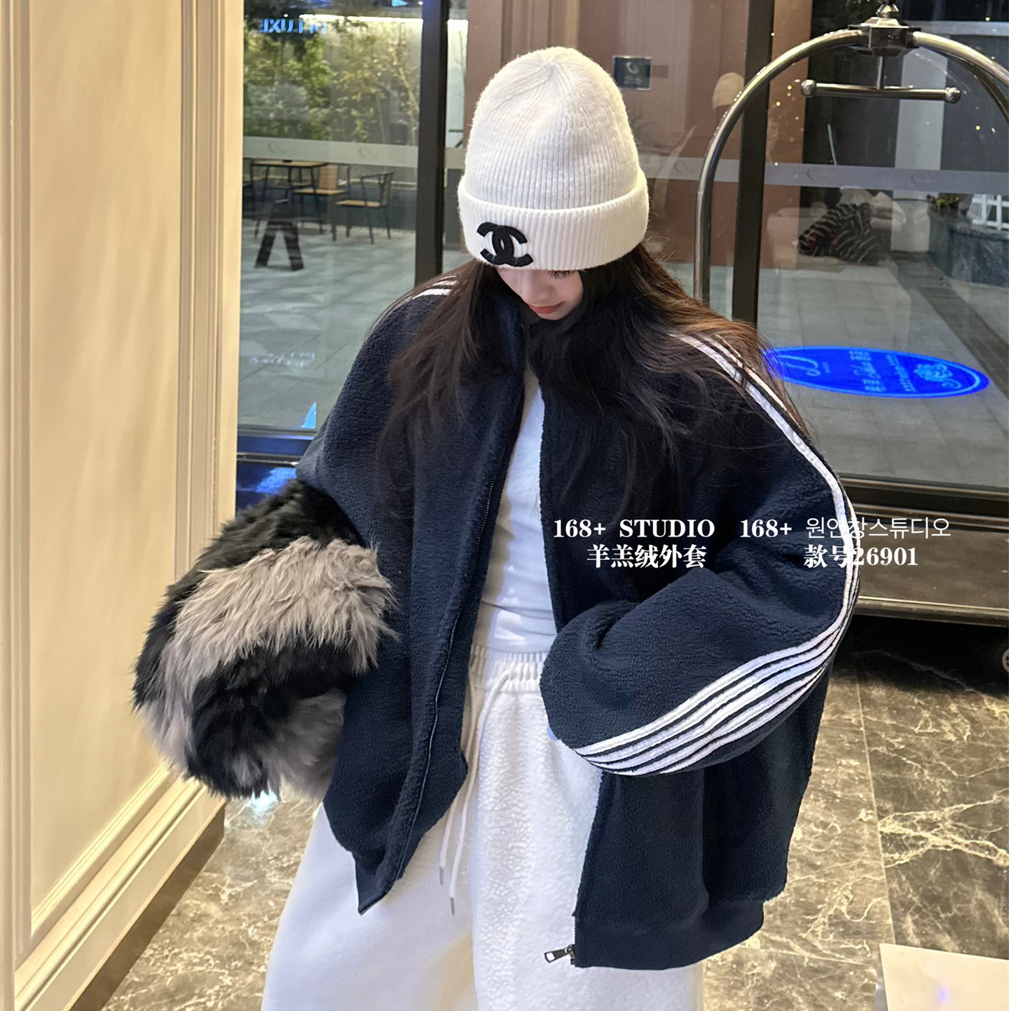 棒球服拉链开衫外套女加绒加厚宽松大码羊羔毛慵懒风上衣中长款潮