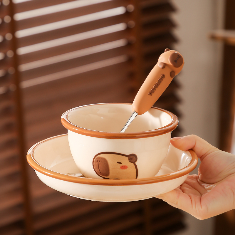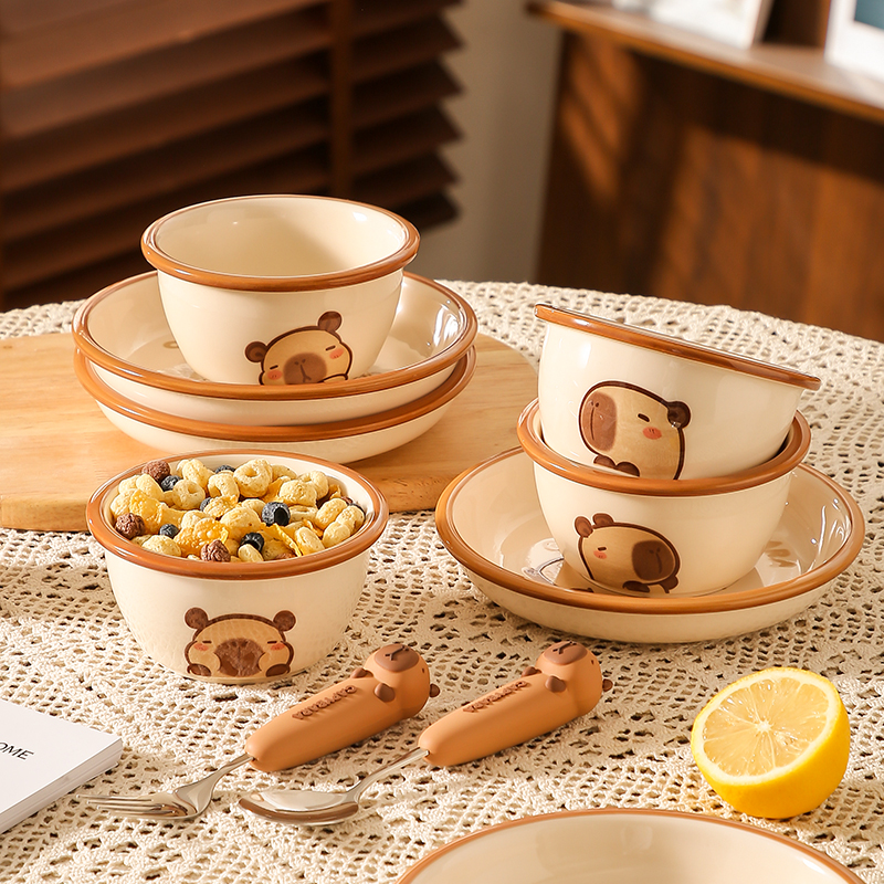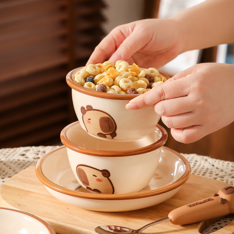 可爱陶瓷米饭碗一人食餐具卡皮巴拉儿童釉下彩饭碗卡通酸奶甜品碗