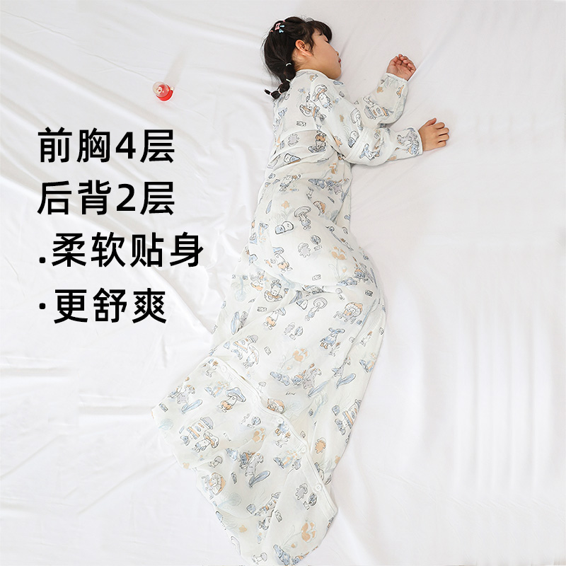 儿童纱布睡袋春秋薄款宝宝春夏睡袋中大童小孩防踢被睡衣