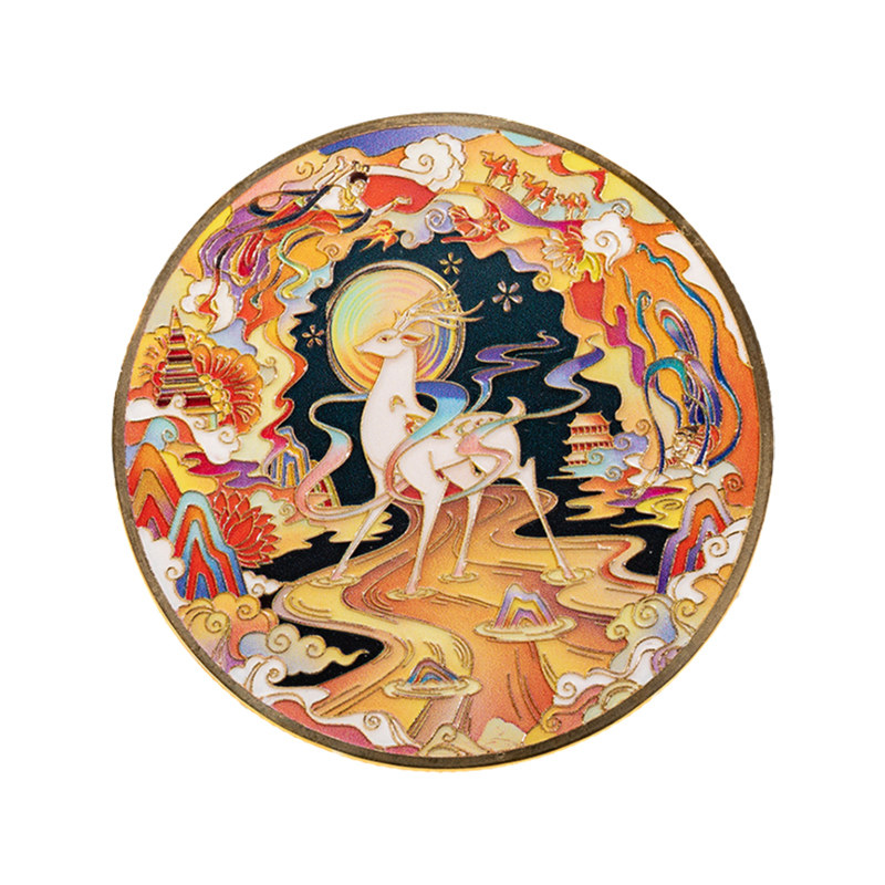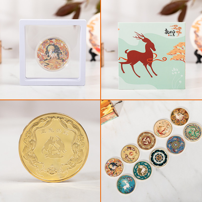 敦煌九色鹿纪念币壁画纪念章徽章甘肃莫高窟金属文创旅游纪念品